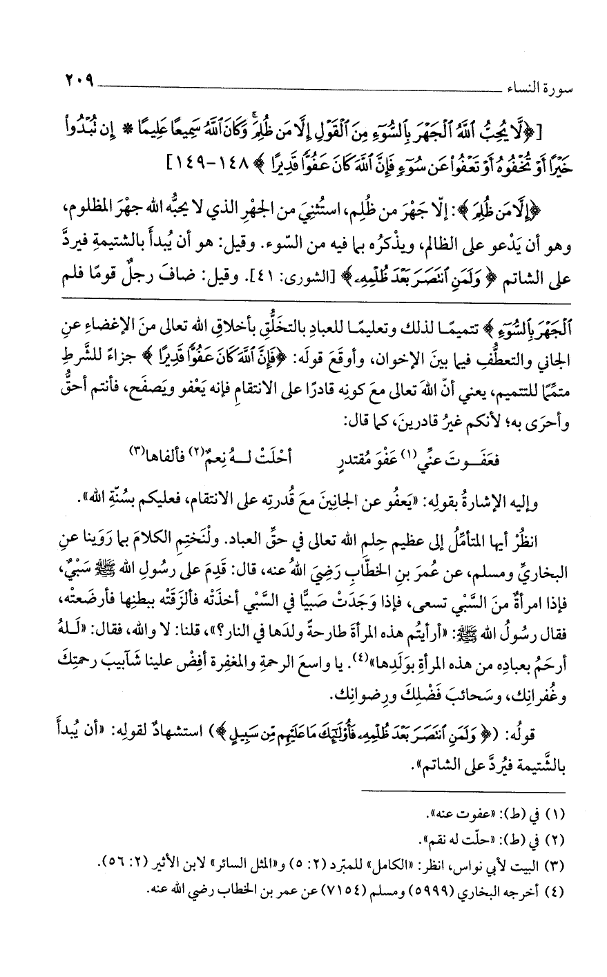 [(لا يُحِبُّ اللَّهُ الْجَهْرَ بِالسُّوءِ مِنَ الْقَوْلِ إِلاَّ مَنْ ظُلِمَ وَكانَ اللَّهُ سَمِيعاً عَلِيماً* إِنْ تُبْدُوا خَيْراً أَوْ تُخْفُوهُ أَوْ تَعْفُوا عَنْ سُوءٍ فَإِنَّ اللَّهَ كانَ عَفُوًّا قَدِيراً)].