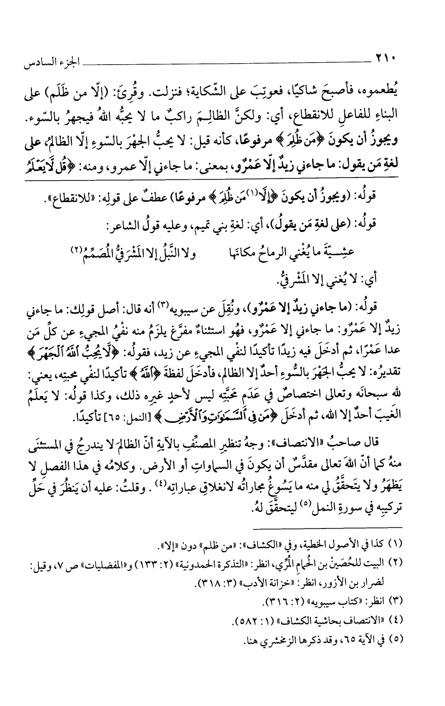 قوله: (ويجوز أن يكون {إِلاَّ مَنْ ظُلِمَ} مرفوعاً) عطفٌ على قوله: "للانقطاع".