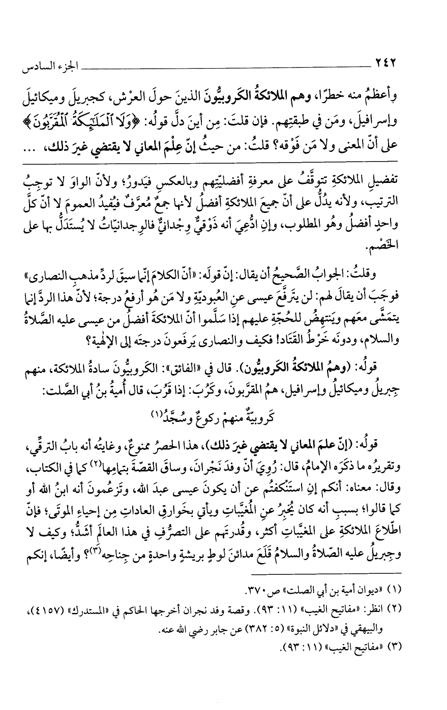 تفضيل الملائكة تتوقف على معرفة أفضليتهم وبالعكس فيدور؛ ولأن الواو لا توجب الترتيب، ولأنه يدل على أن جميع الملائكة أفضل لأنها جمع معرف فيفيد العموم لا أن كل واحد أفضل وهو المطلوب، وإن ادعى أنه ذوقي وجداني فالوجدانيات لا يستدل بها على الخصم.