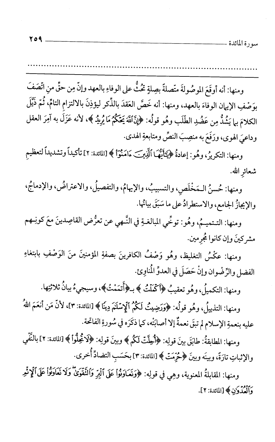 ومنها: التكرير، وهو: إعادة {يَا أَيُّهَا الَّذِينَ آمَنُوا} [المائدة: 2] تأكيداً وتشديداً لتعظيم شعائر الله.