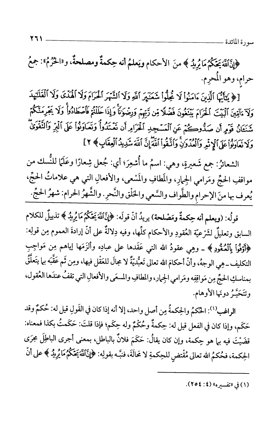 قوله: (ويعلم أنه حكمة ومصلحة) يريد أن قوله: {إِنَّ اللَّهَ يَحْكُمُ مَا يُرِيدُ} تذييل للكلام السابق وتعليل لشرعية العقود والأحكام كلها، وفيه دلالة على أن إرادة العموم من قوله: {أَوْفُوا بِالْعُقُودِ} - وهي عقود الله التي عقدها على عباده وألزمها إياهم من مواجب التكليف - هي الوجه، وأن أحكام الله تعالى تعبدية لا مجال للعقل فيها، ومن ثم عقبه بما يتعلق بمناسك الحج من مواقفه ومرامي الجمار، والمطاف والمسعى والأفعال التي تقف عندها العقول، وتتحير دونها الأوهام.