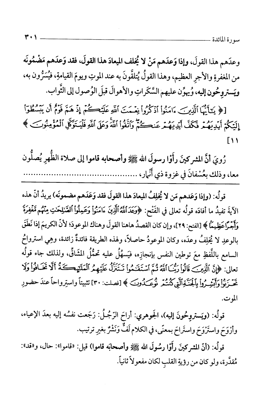 [(يا أَيُّهَا الَّذِينَ آمَنُوا اذْكُرُوا نِعْمَتَ اللَّهِ عَلَيْكُمْ إِذْ هَمَّ قَوْمٌ أَنْ يَبْسُطُوا إِلَيْكُمْ أَيْدِيَهُمْ فَكَفَّ أَيْدِيَهُمْ عَنْكُمْ وَاتَّقُوا اللَّهَ وَعَلَى اللَّهِ فَلْيَتَوَكَّلِ)]. الْمُؤْمِنُونَ)].