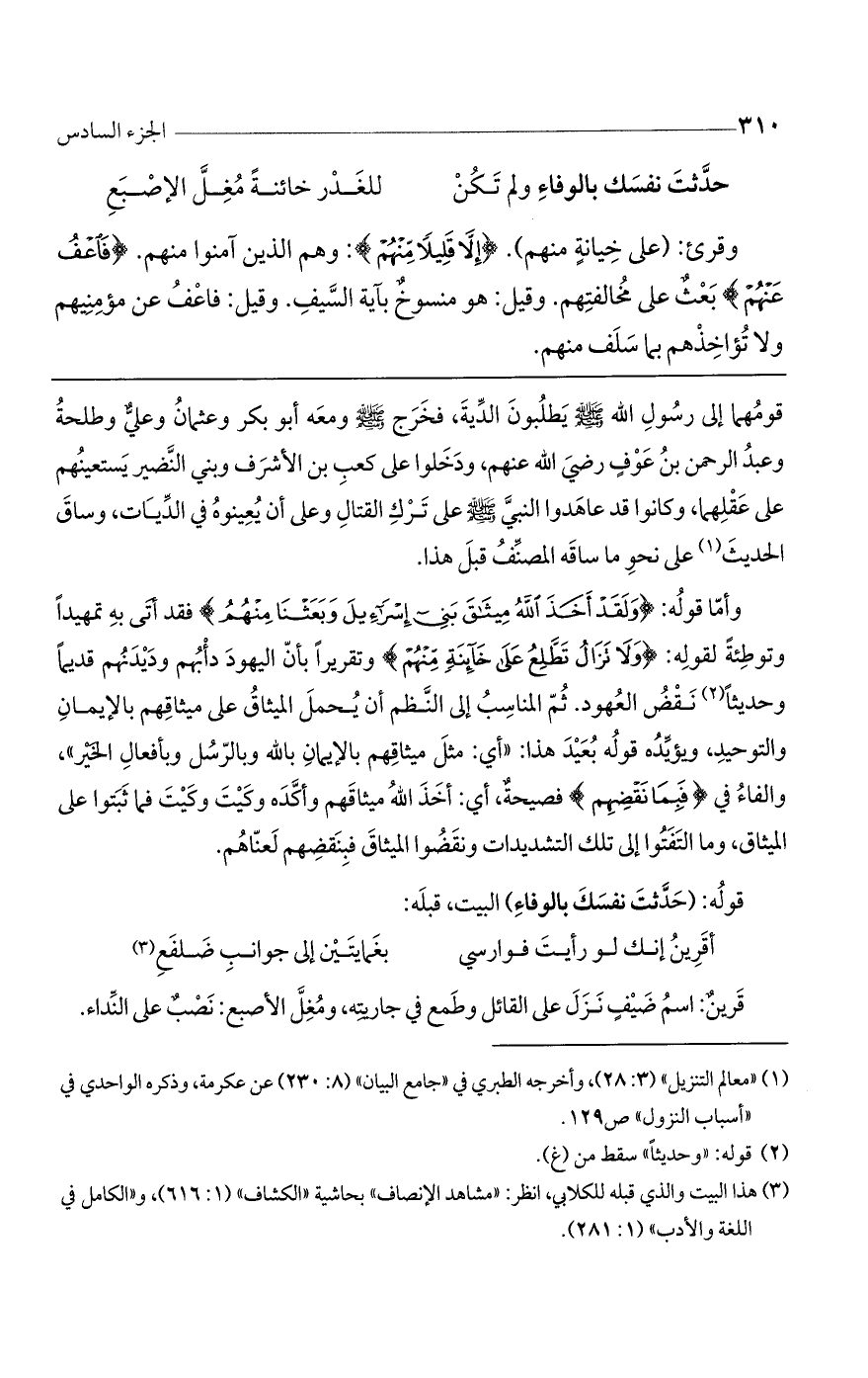 حَدَّثْتَ نَفْسَكَ بِالْوَفَاءِ وَلَمْ تَكُنْ ... لِلْغَدْرِ خَائِنَةً مَضَلَّ الْأُصْبُعِ