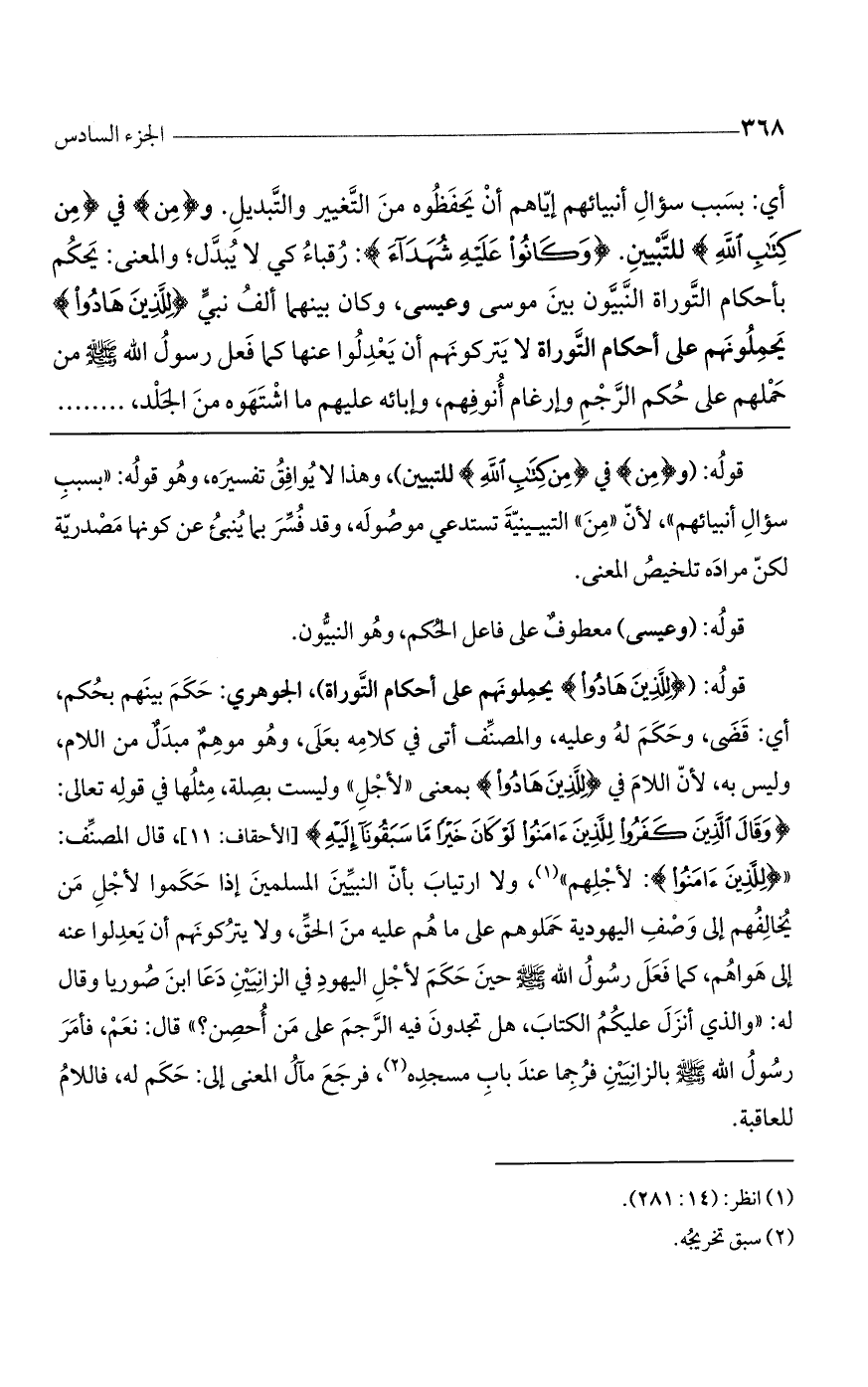قوله: (و {مِن} في {مِنْ كِتَابِ اللَّهِ} للتبيين)، وهذا لا يوافق تفسيره، وهو قوله: "بسبب سؤال أنبيائهم"، لأن "مِنَ" التبيينية تستدعي موصوله، وقد فُسر بما يُنبئ عن كونها مصدرية لكن مراده تلخيص المعنى.