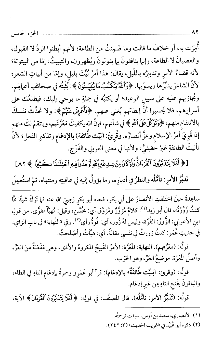 قوله: (تدبر الأمر: تأمله)، قال المصنف: في قوله: (أَفَلا يَتَدَبَّرُونَ القُرْآنَ) الآية،