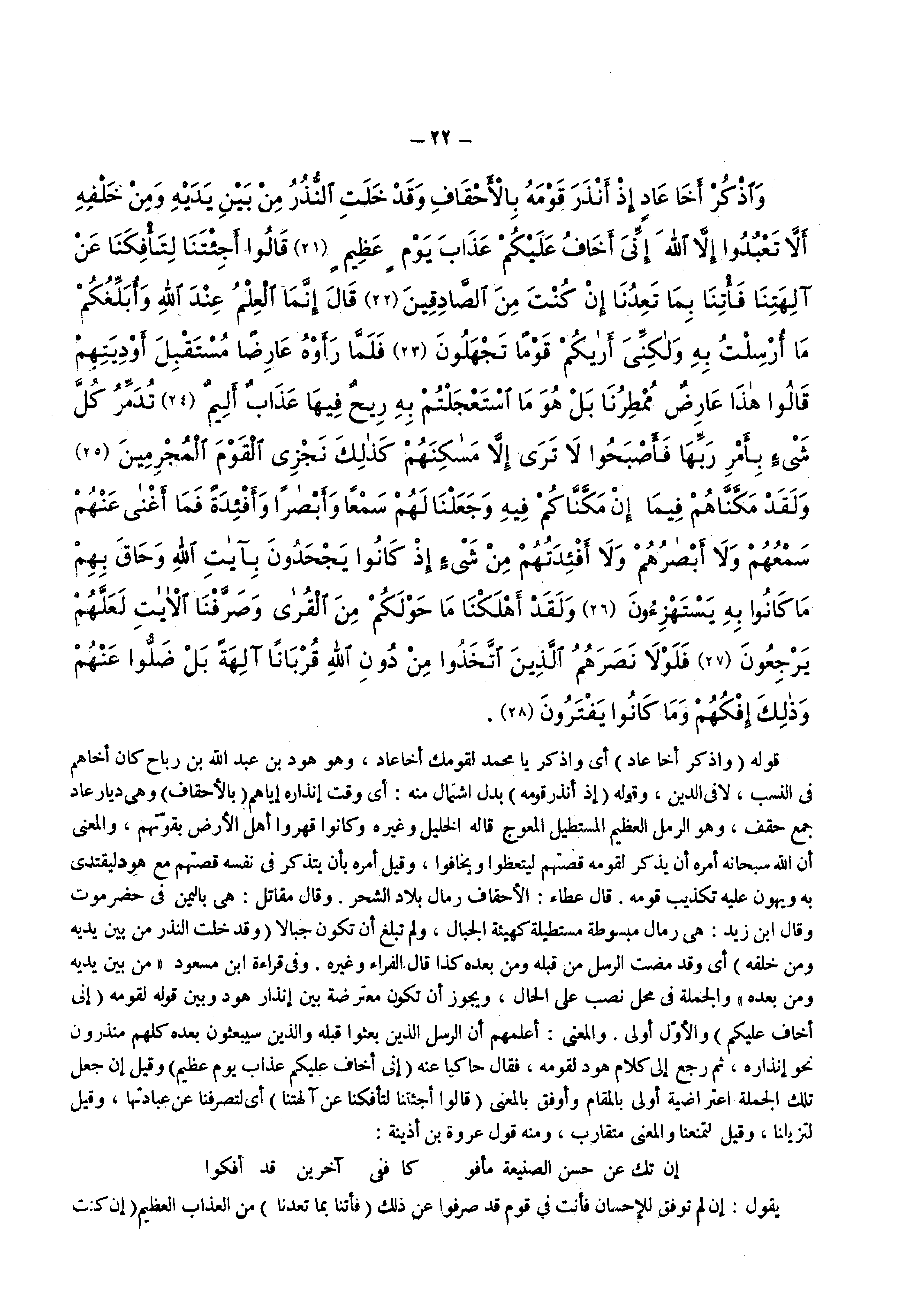 الأحقاف : ( 21 ) واذكر أخا عاد . . . . .