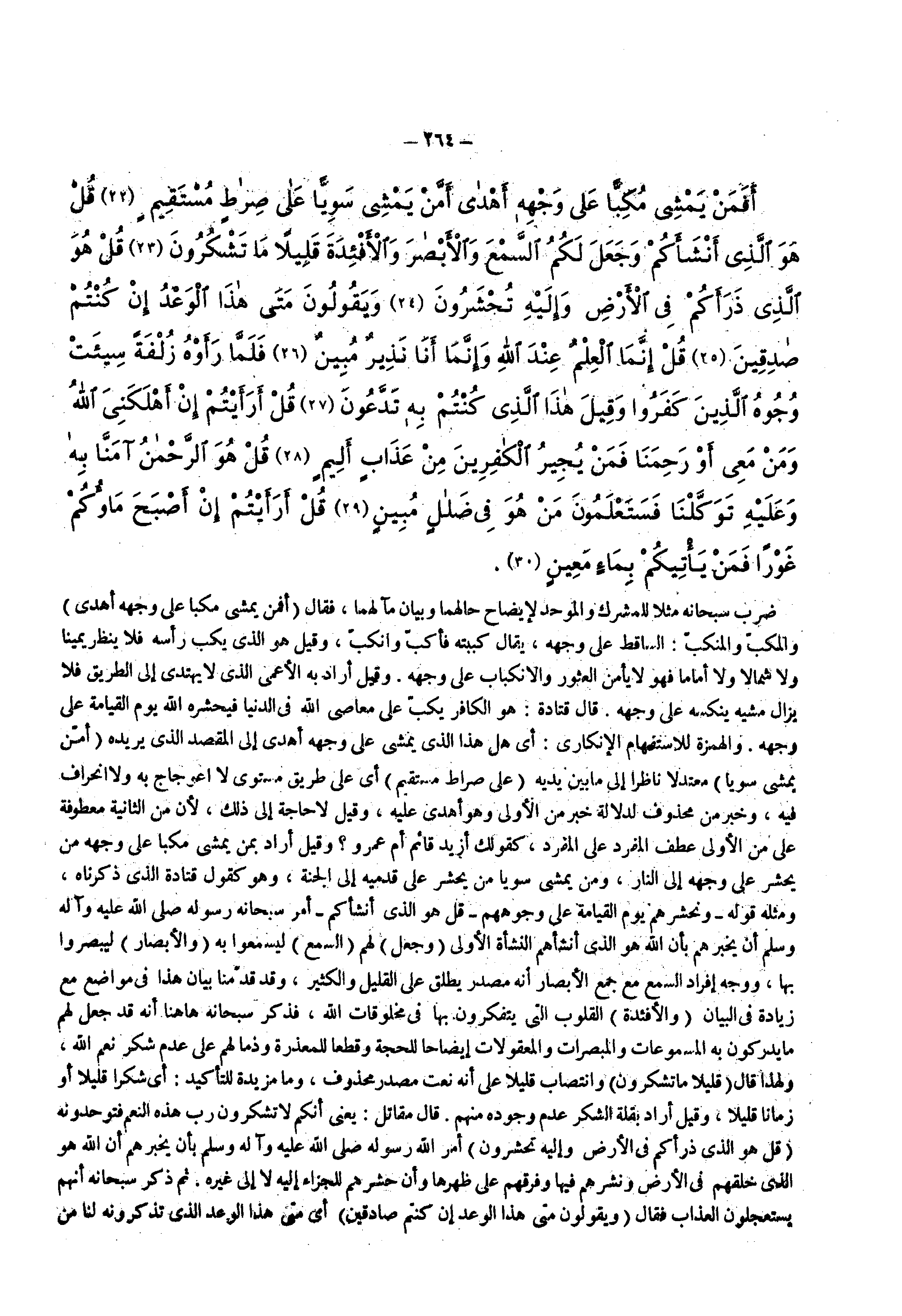 الملك : ( 22 ) أفمن يمشي مكبا . . . . .