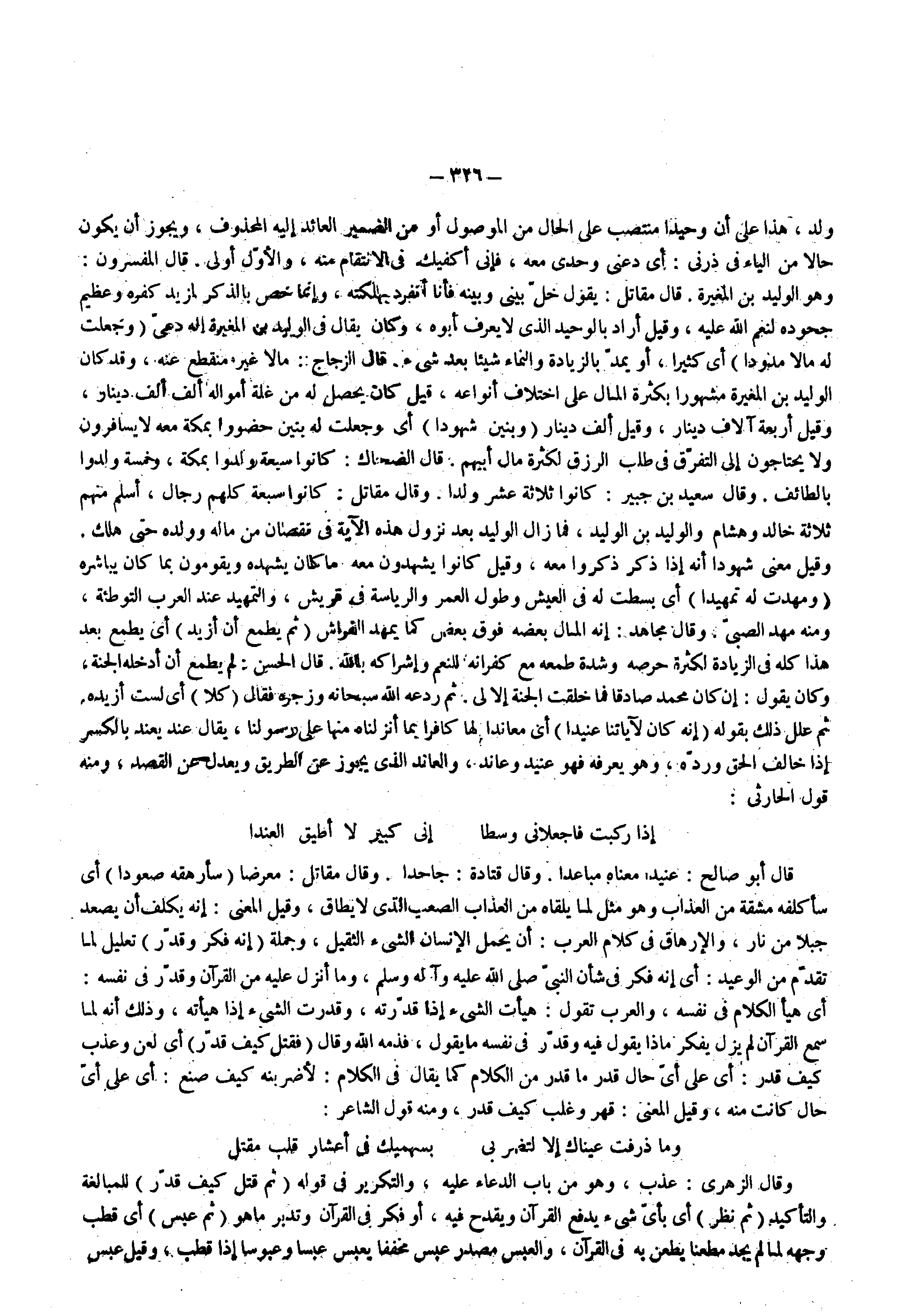 ولد هذا على أن وحيدا منتصب على الحال من الموصول أو من الضمير العائد إليه المحذوف ويجوز أن يكون حالا من الياء في ذرني أي دعني وحدي معه فإني أكفيك في الانتقام منه والأول أولى قال المفسرون هو الوليد بن المغيرة قال مقاتل يقول خل بيني وبينه فأنا أنفرد بهلكته و 4 إنما خص بالذكر لمزيد كفره وعظيم جحوده لنعم الله عليه وقيل أراد بالوحيد الذي لا يعرف ابوه وكان يقال في الوليد بن المغيرة أنه دعى