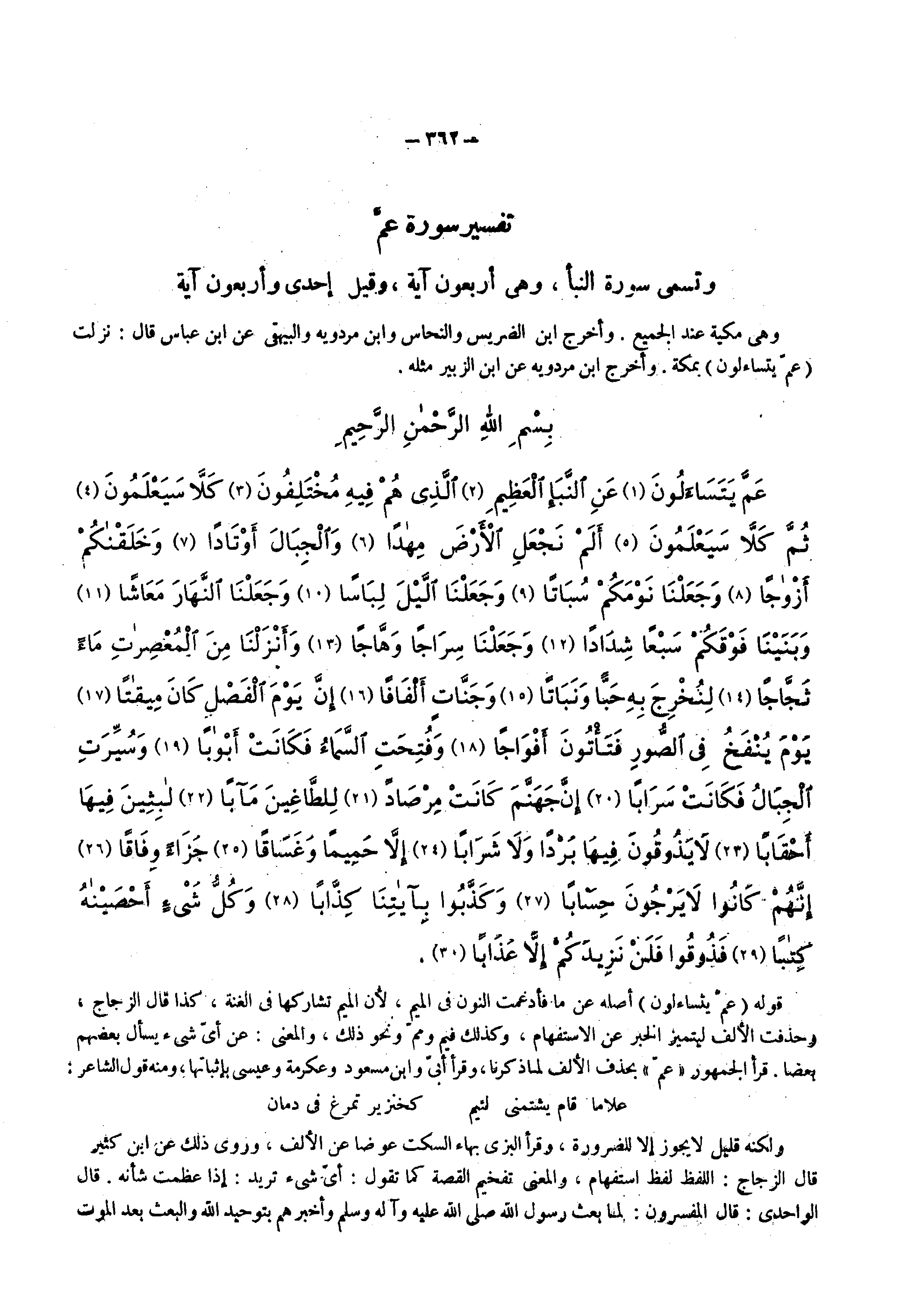 سورة عم وتسمى سورة النبأ