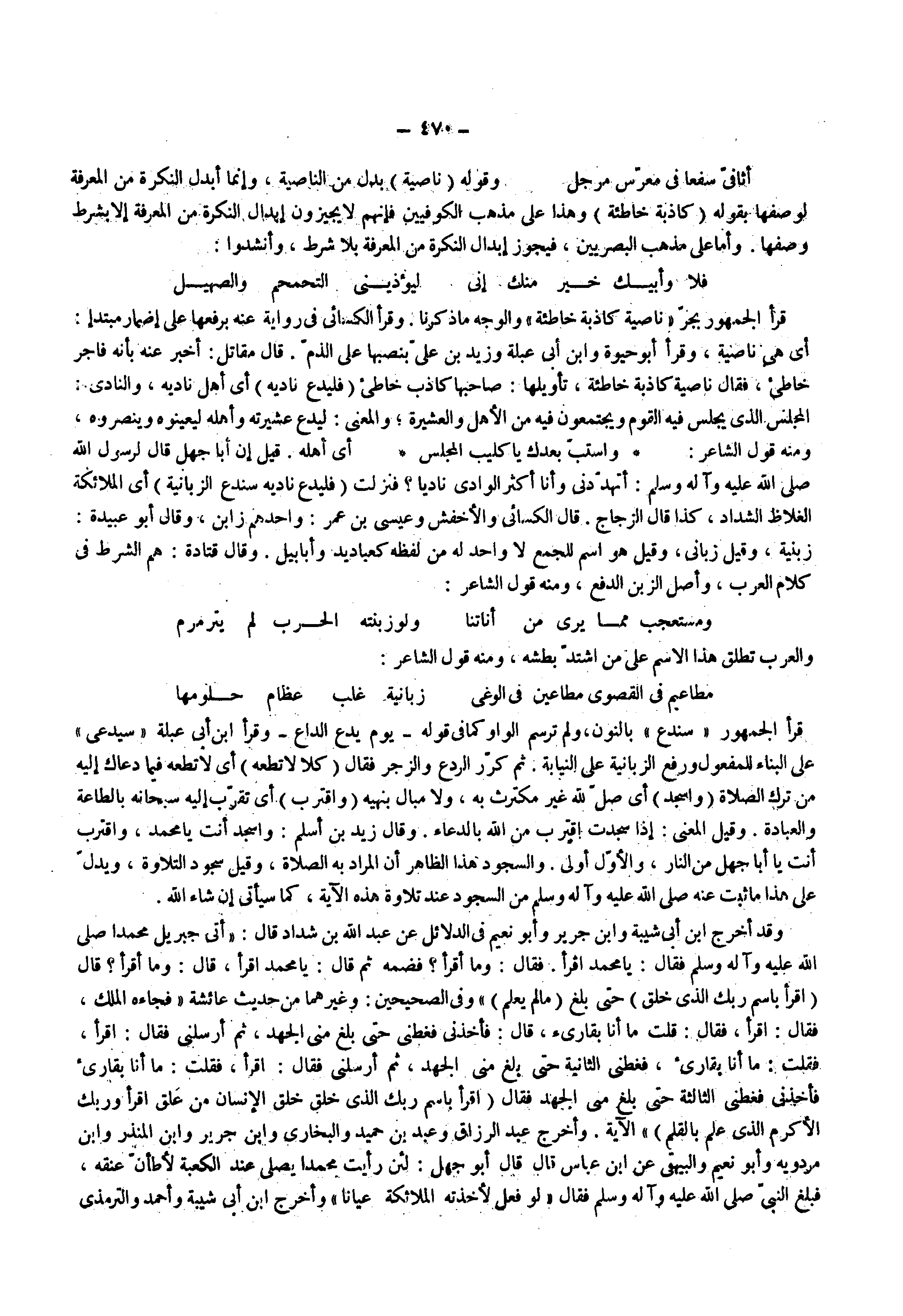 قرأ الجمهور بحر ) ناصية كاذبة خاطئة ( والوجه ما ذكرنا وقرأ الكسائي في رواية عنه برفعها على إضمار مبتدإ أي هي ناصية وقرأ أبو حيوة وابن أبي عبلة وزيد بن علي بنصبها على الذم قال مقاتل أخبرعنه بأنه فاجر خاطىء فقال ناصية كاذبة خاطئة تأويلها صاحبها كاذب حاطىء