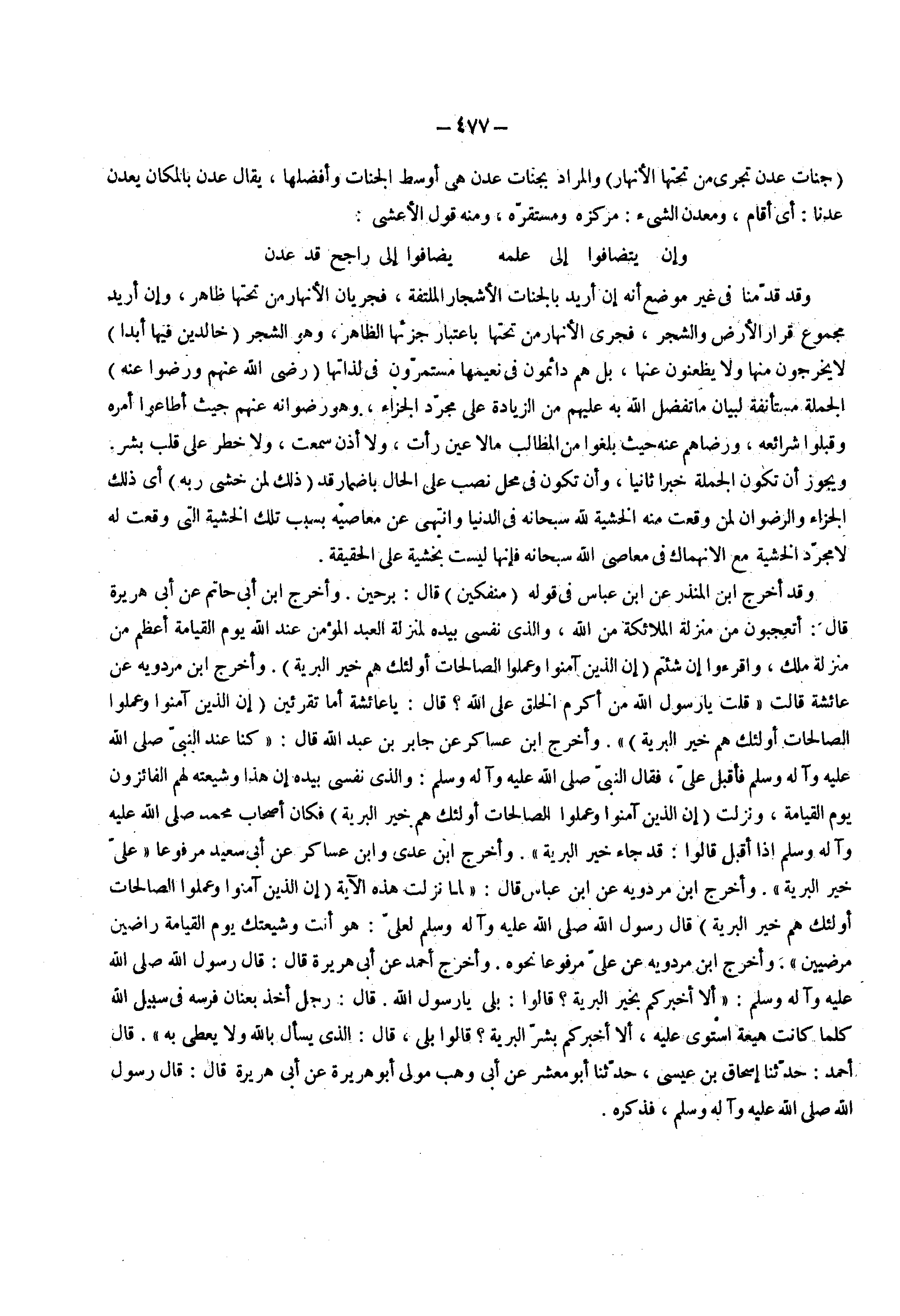 وقد أخرج ابن المنذر عن ابن عباس في قوله ) منفكين ( قال برحين وأخرج ابن أبي حاتم عن أبي هريرة قال أتعجبون من منزلة الملائكة من الله والذي نفسي بيده لمنزلة العبد المؤمن عند الله يوم القيامة أعظم من منزلة ملك واقرؤوا إن شئتم ) إن الذين آمنوا وعملوا الصالحات أولئك هم خير البرية ( وأخرج ابن مردويه عن عائشة قالت قلت يا رسول الله من أكرم الخلق على الله قال يا عائشة أما تقرئين ) إن الذين آمنوا وعملوا الصالحات أولئك هم خير البرية ( وأخرج ابن عساكر عن جابر بن عبد الله قال كنا عند النبي صلى الله عليه واله وسلم فأقبل علي فقال النبي صلى الله عليه واله وسلم والذي نفسي بيده إن هذا وشيعته لهم الفائزون يوم القيامة ونزلت ) إن الذين آمنوا وعملوا الصالحات أولئك هم خير البرية ( فكان أصحاب محمد صلى الله عليه واله وسلم إذا أقبل قالوا قد جاء خير البرية وأخرج ابن عدي وابن عساكر عن أبي سعيد مرفوعا على خير البرية وأخرج ابن مردويه عن ابن عباس قال لما نزلت هذه الاية ) إن الذين آمنوا وعملوا الصالحات أولئك هم خير البرية ( قال رسول الله صلى الله عليه واله وسلم لعلي هو أنت وشيعتك يوم القيامة راضين مرضيين وأخرج ابن مردويه عن علي مرفوعا نحوه وأخرج أحمد عن أبي هريرة قال قال رسول الله صلى الله عليه واله وسلم إلا أخبركم بخير البرية قالوا بلى يا رسول الله قال رجل أخذ بعنان فرسه في سبيل الله كلما كانت هيعة استوى عليه ألا أخبركم بشر البرية قالوا بلى قال الذي يسأل بالله ولا يعطى به قال أحمد حدثنا إسحاق بن عيسى حدثنا أبو معشر عن أبي وهب مولى أبو هريرة عن أبي هريرة قال قال رسول الله صلى الله عليه واله وسلم فذكره