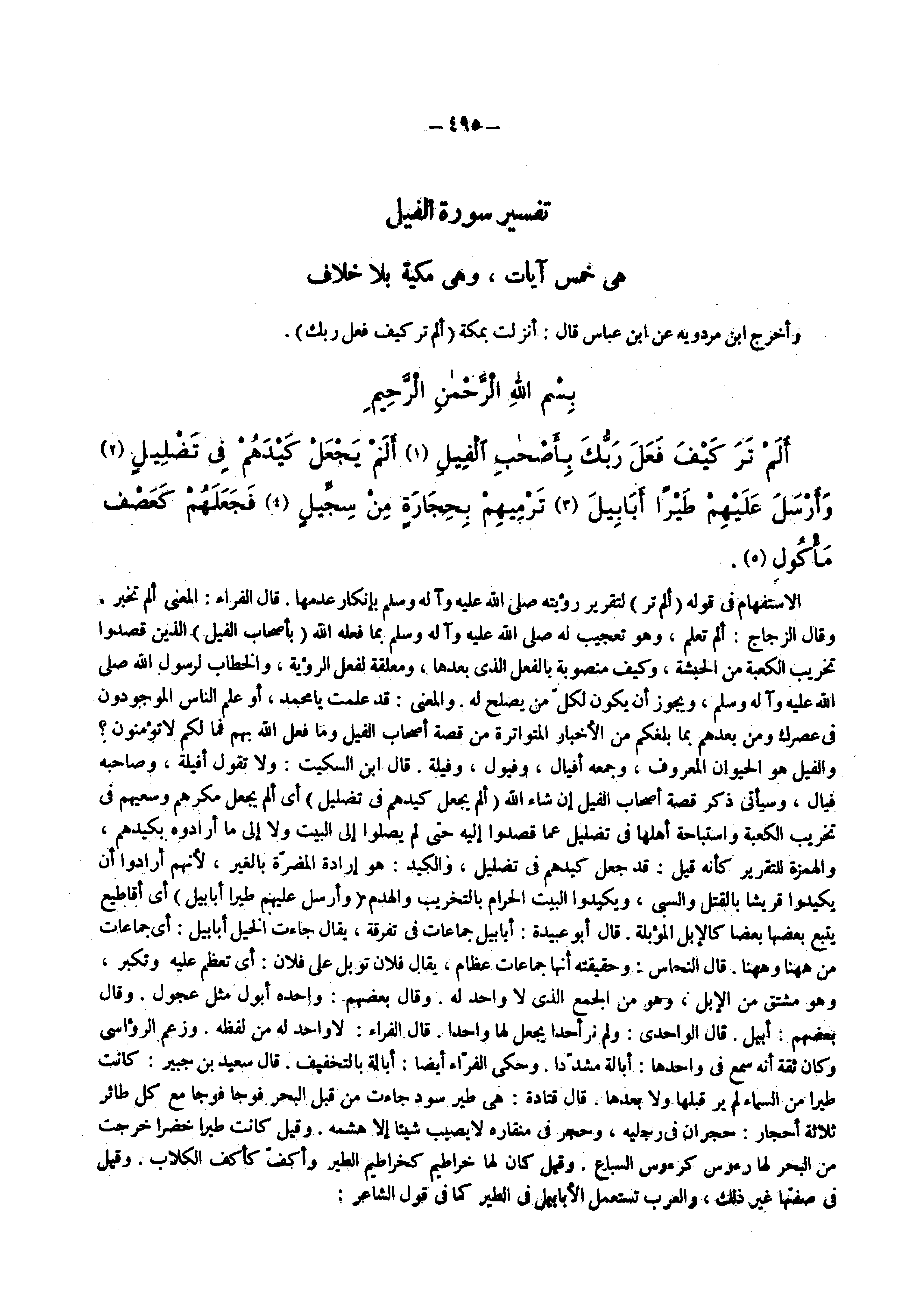 وهي مكية بلا خلاف وأخرج ابن مردويه عن ابن عباس قال أنزلت بمكة ) ألم تر كيف فعل ربك ( بسم الله الرحمن الرحيم