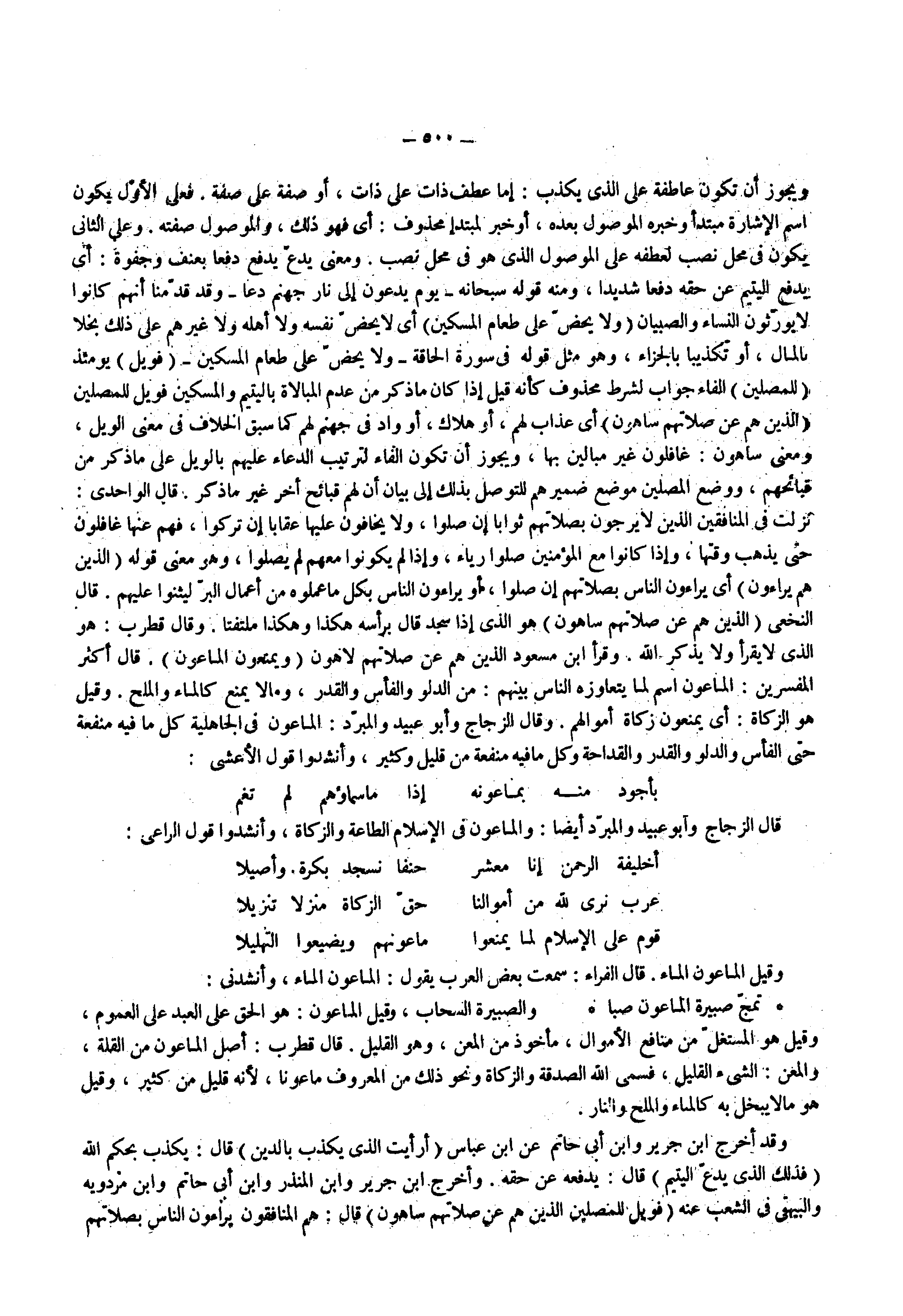 قال الزجاج وابو عبيد والمبرد أيضا والماعون في الإسلام الطاعة والزكاة وأنشدوا قول الراعي أخليفة الرحمن إنا معشر