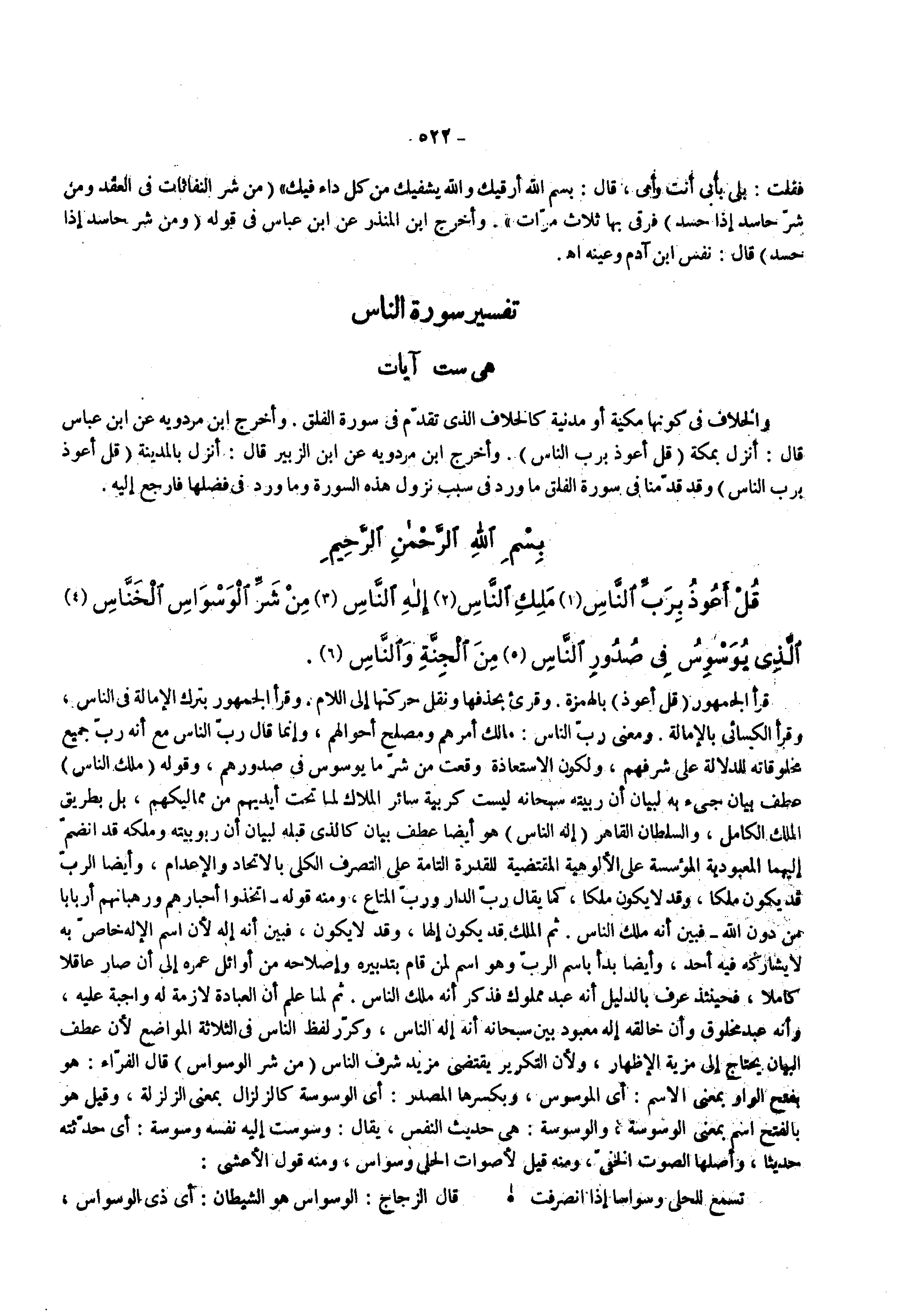 الناس : ( 1 ) قل أعوذ برب . . . . .