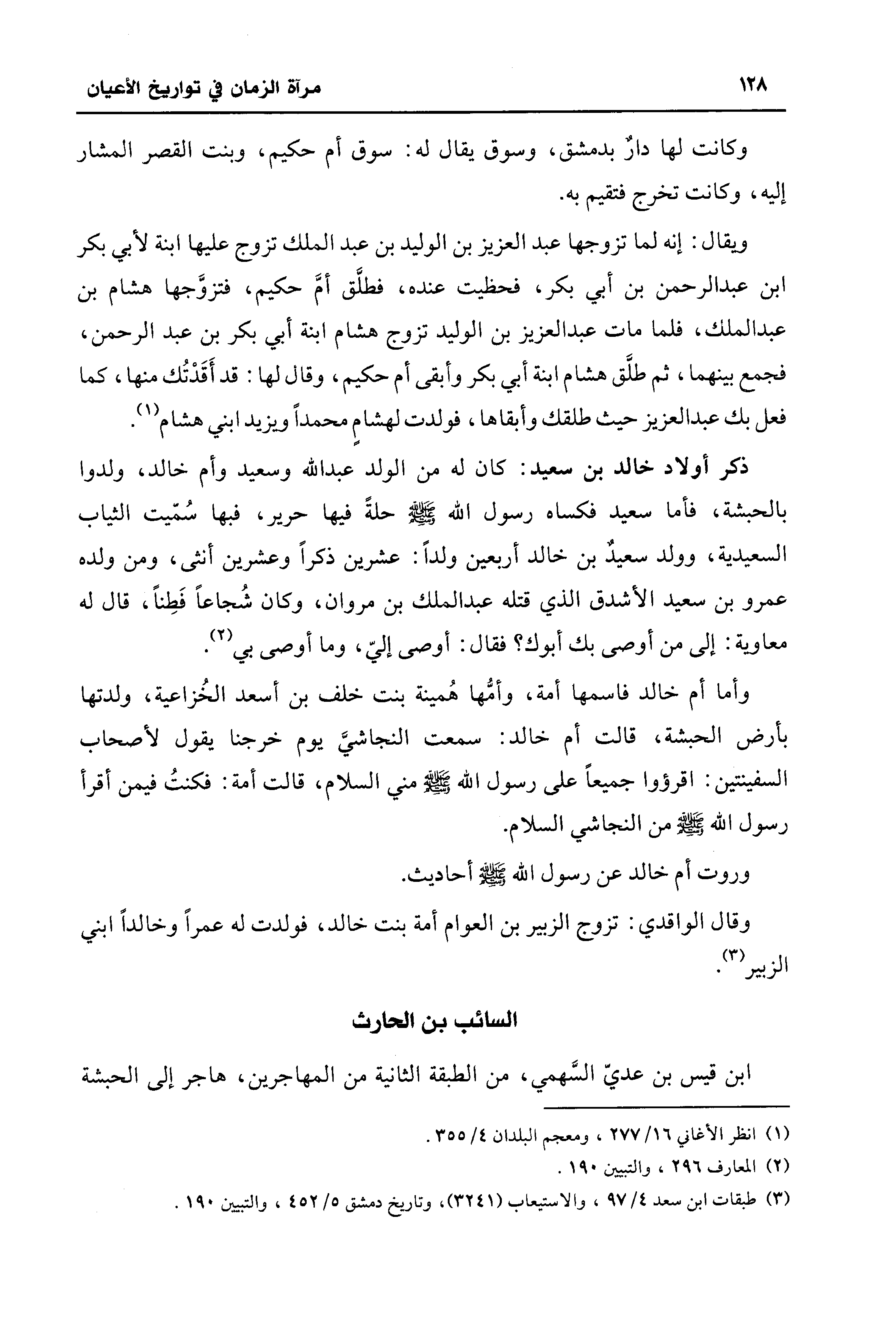 وقال الواقدي: تزوج الزبير بن العوام أمة بنت خالد، فولدت له عمرًا وخالدًا ابني الزبير (¬3).