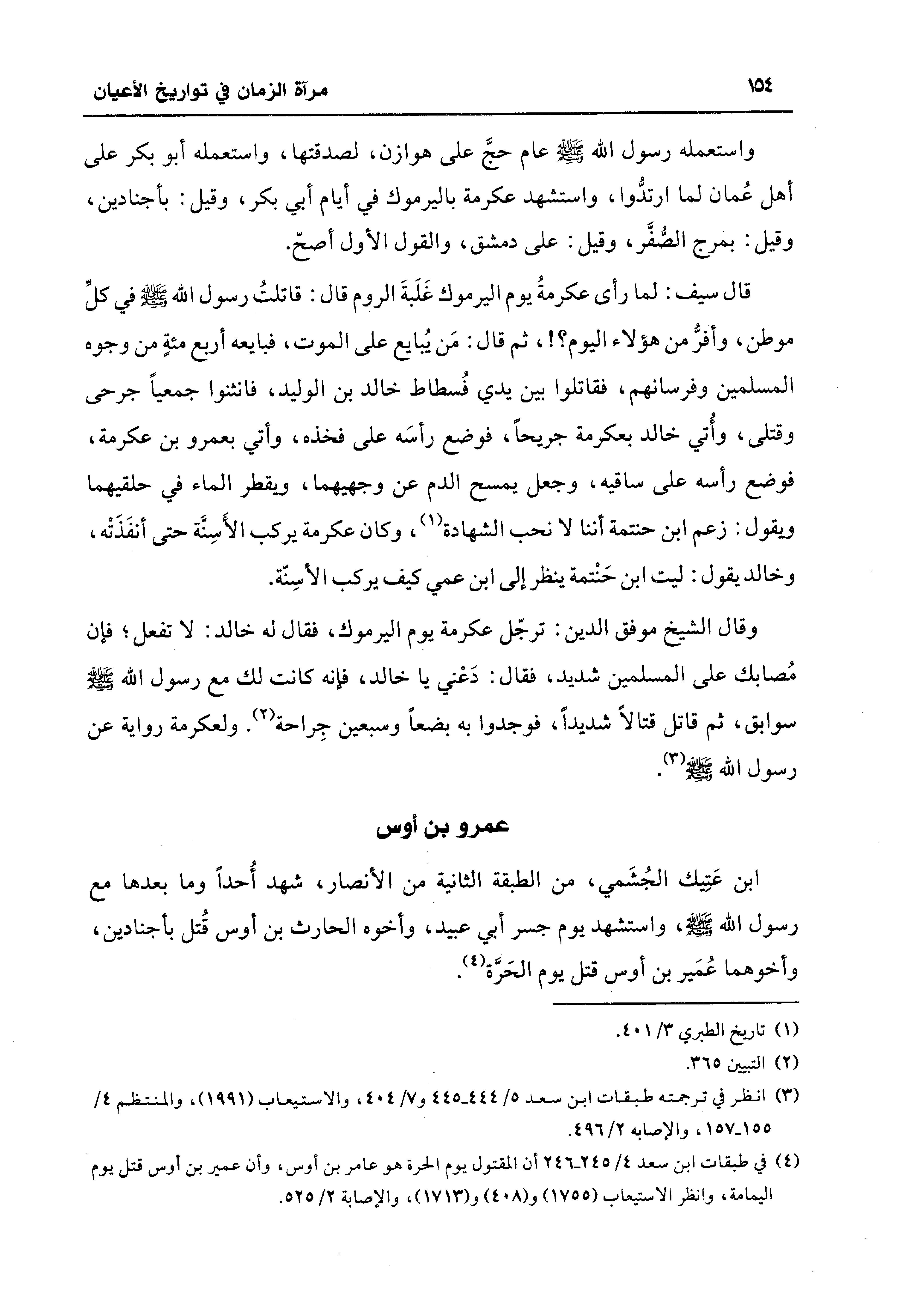 (¬4) في طبقات ابن سعد 4/ 245 - 246 أن المقتول يوم الحرة هو عامر بن أوس، وأن عمير بن أوس قتل يوم اليمامة، وانظر الاستيعاب (1755) و (408) و (1713)، والإصابة 2/ 525.
