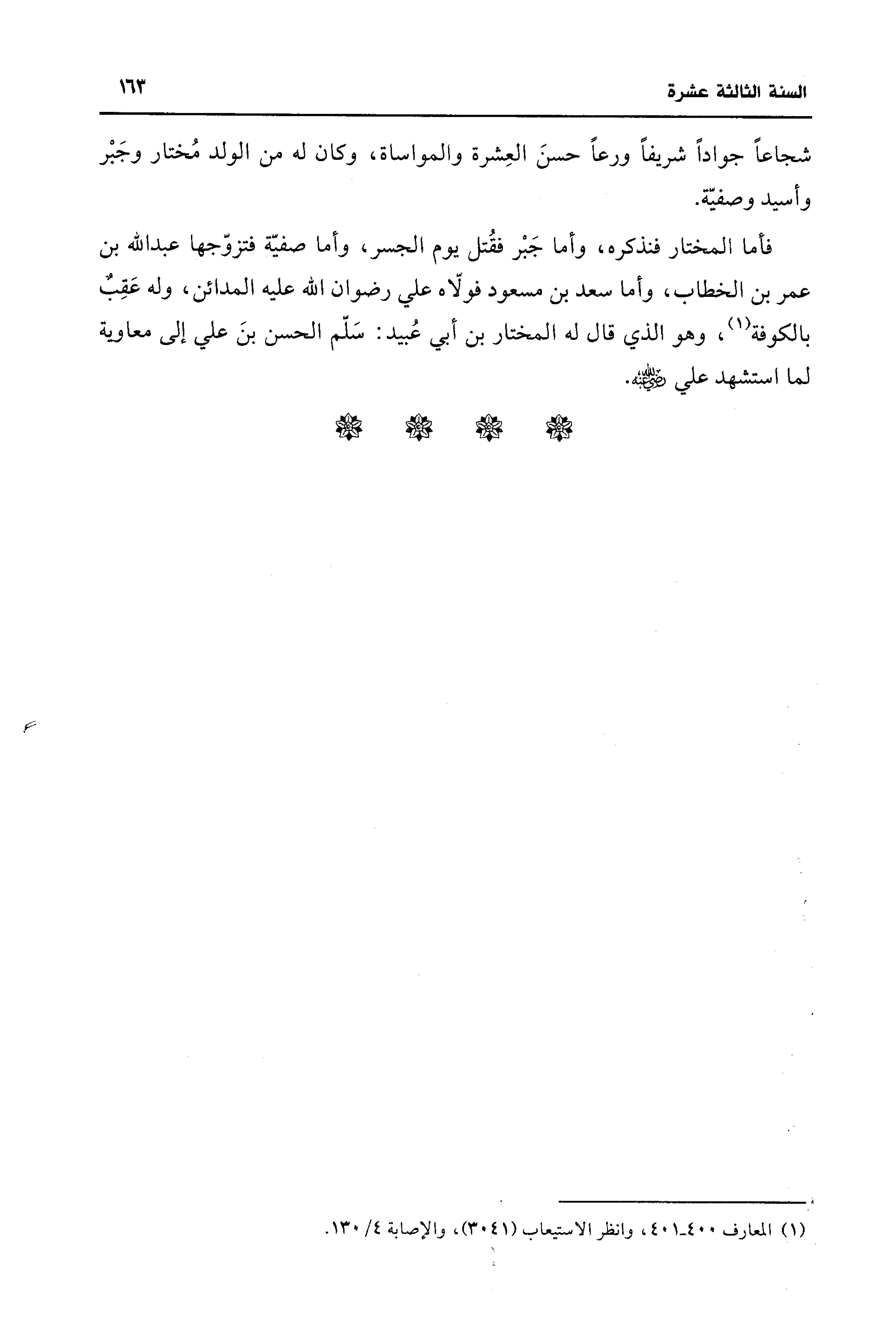 شجاعًا جوادًا شريفًا ورعًا حسنَ العِشرة والمواساة، وكان له من الولد مُختار وجَبْر وأسيد وصفيّة.