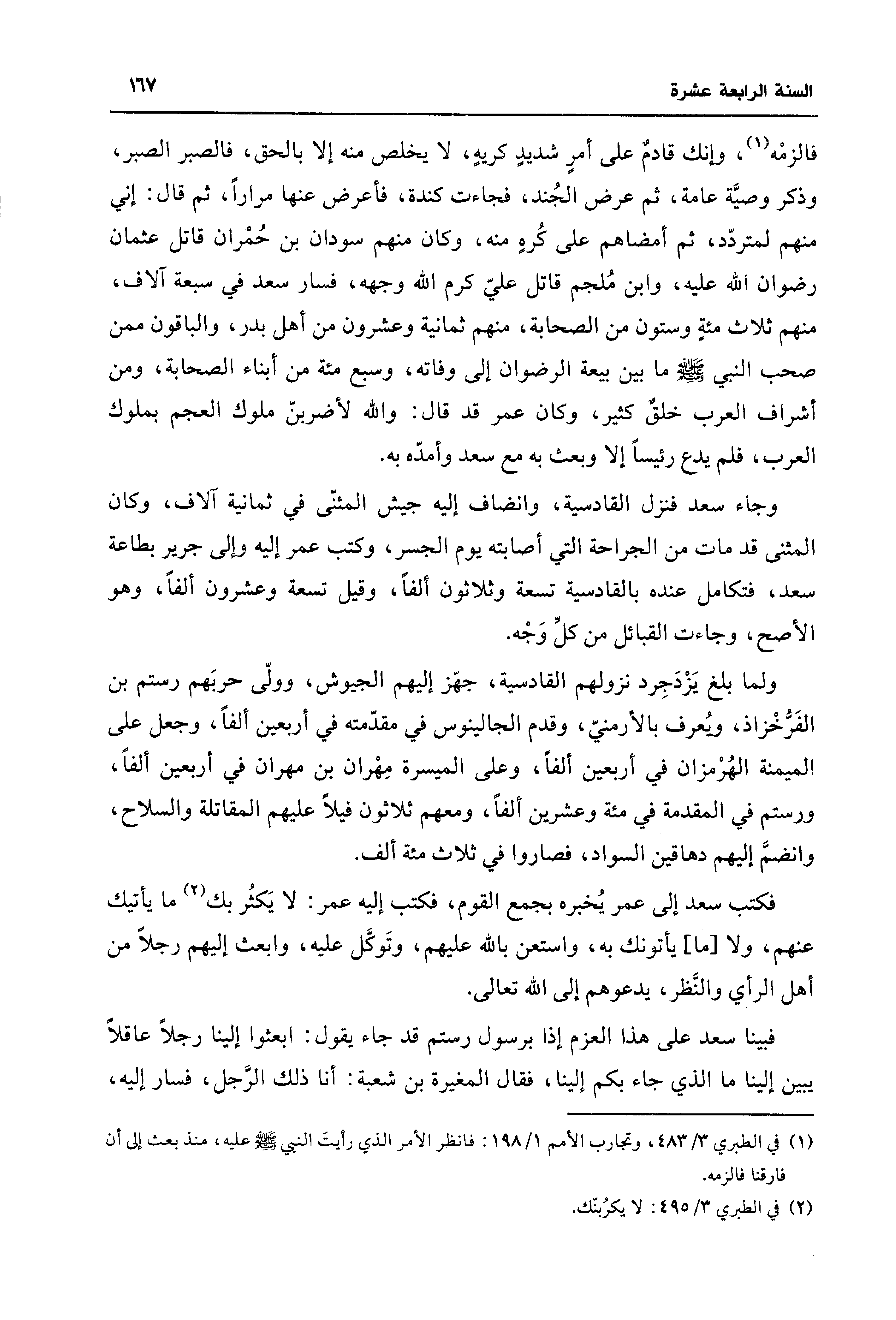 فكتب سعد إلى عمر يُخبره بجمع القوم، فكتب إليه عمر: لا يَكثُر بك (¬2) ما يأتيك عنهم، ولا [ما] يأتونك به، واستعن باللَّه عليهم، وتَوكَّل عليه، وابعث إليهم رجلًا من أهل الرأي والنَّظر، يدعوهم إلى اللَّه تعالى.