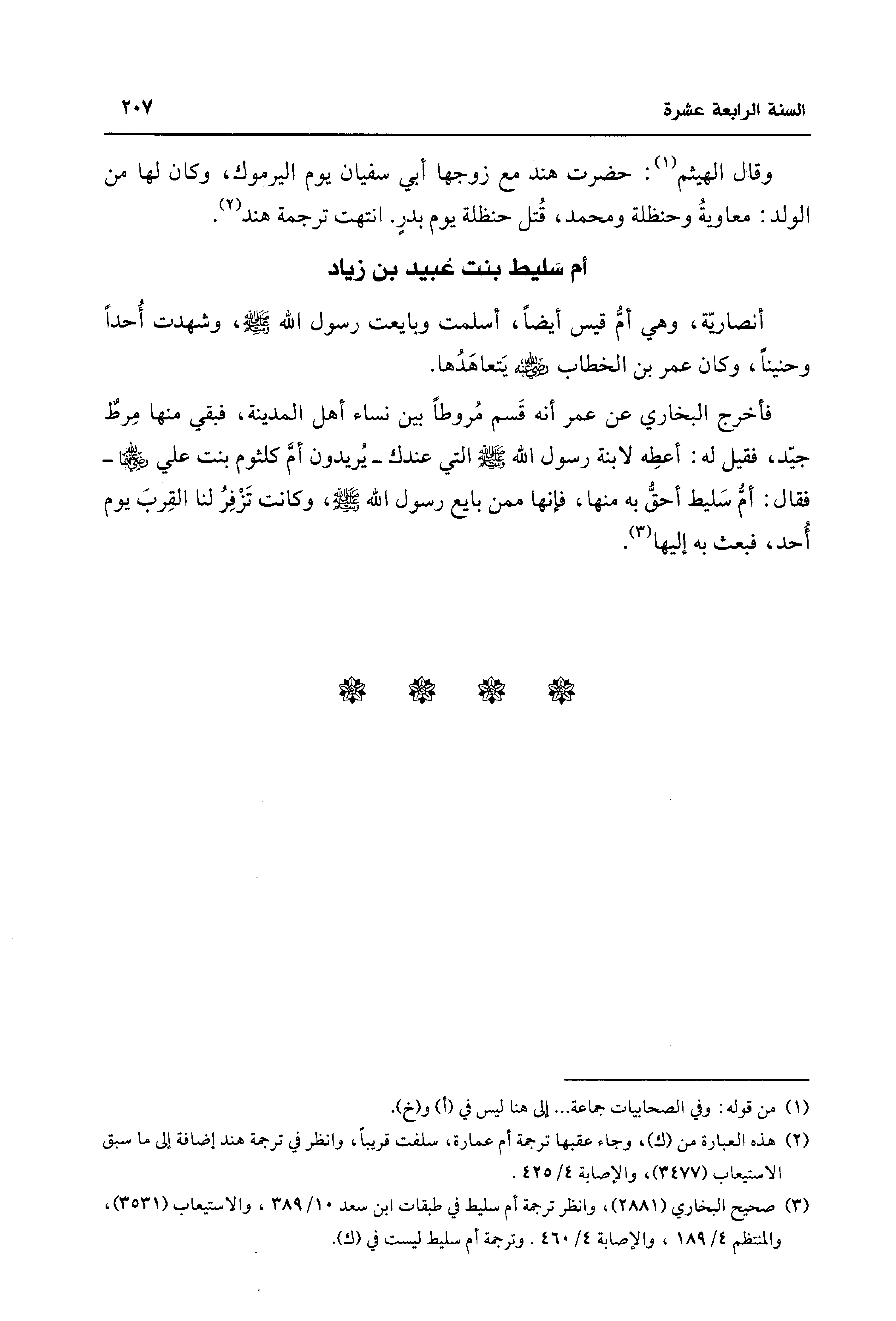 (¬3) صحيح البخاري (2881)، وانظر ترجمة أم سليط في طبقات ابن سعد 10/ 389، والاستيعاب (3531)، والمنتظم 4/ 189، والإصابة 4/ 460. وترجمة أم سليط ليست في (ك).