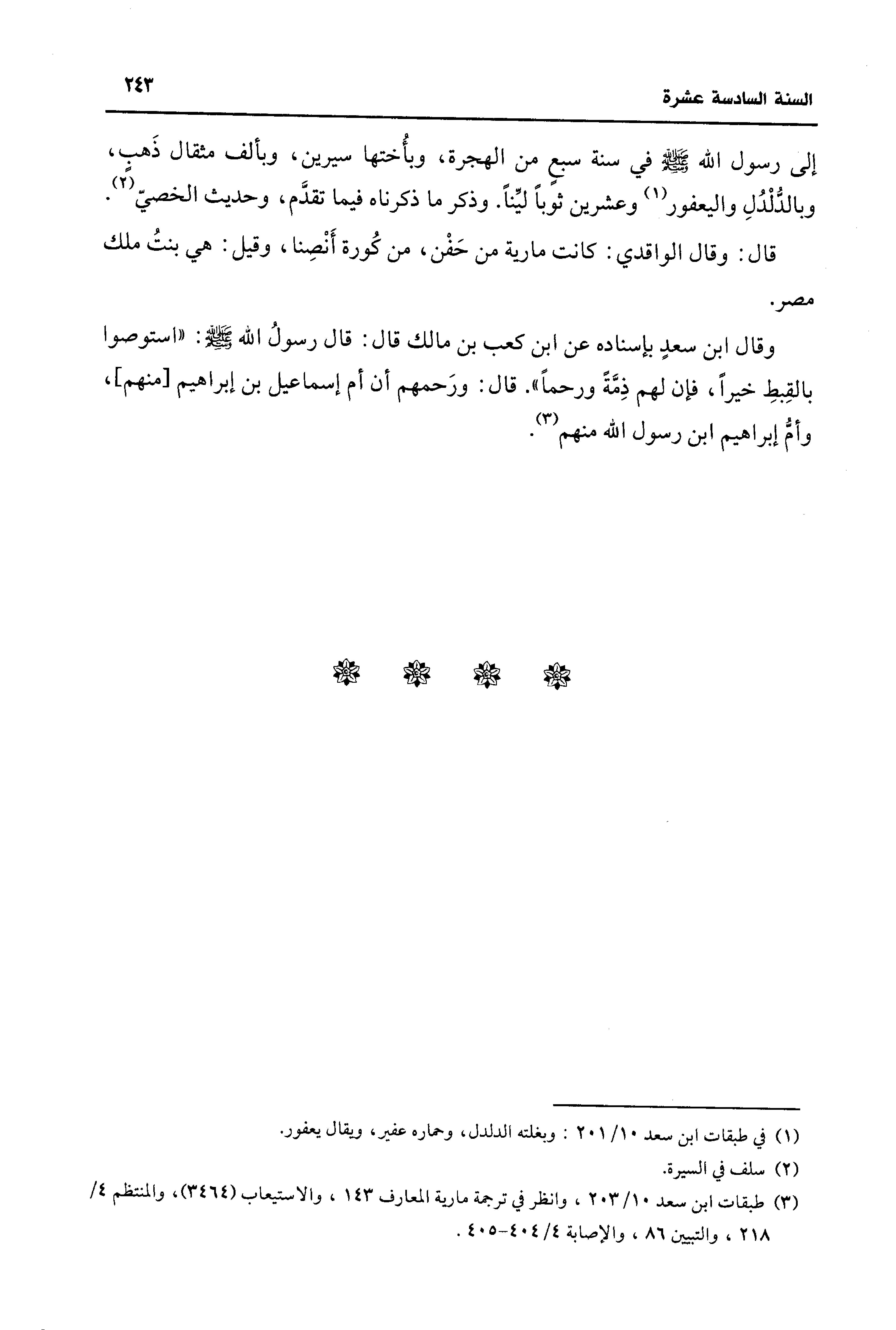 (¬3) طبقات ابن سعد 10/ 203، وانظر في ترجمة مارية المعارف 143، والاستيعاب (3464)، والمنتظم 4/ 218، والتبيين 86، والإصابة 4/ 404 - 405.