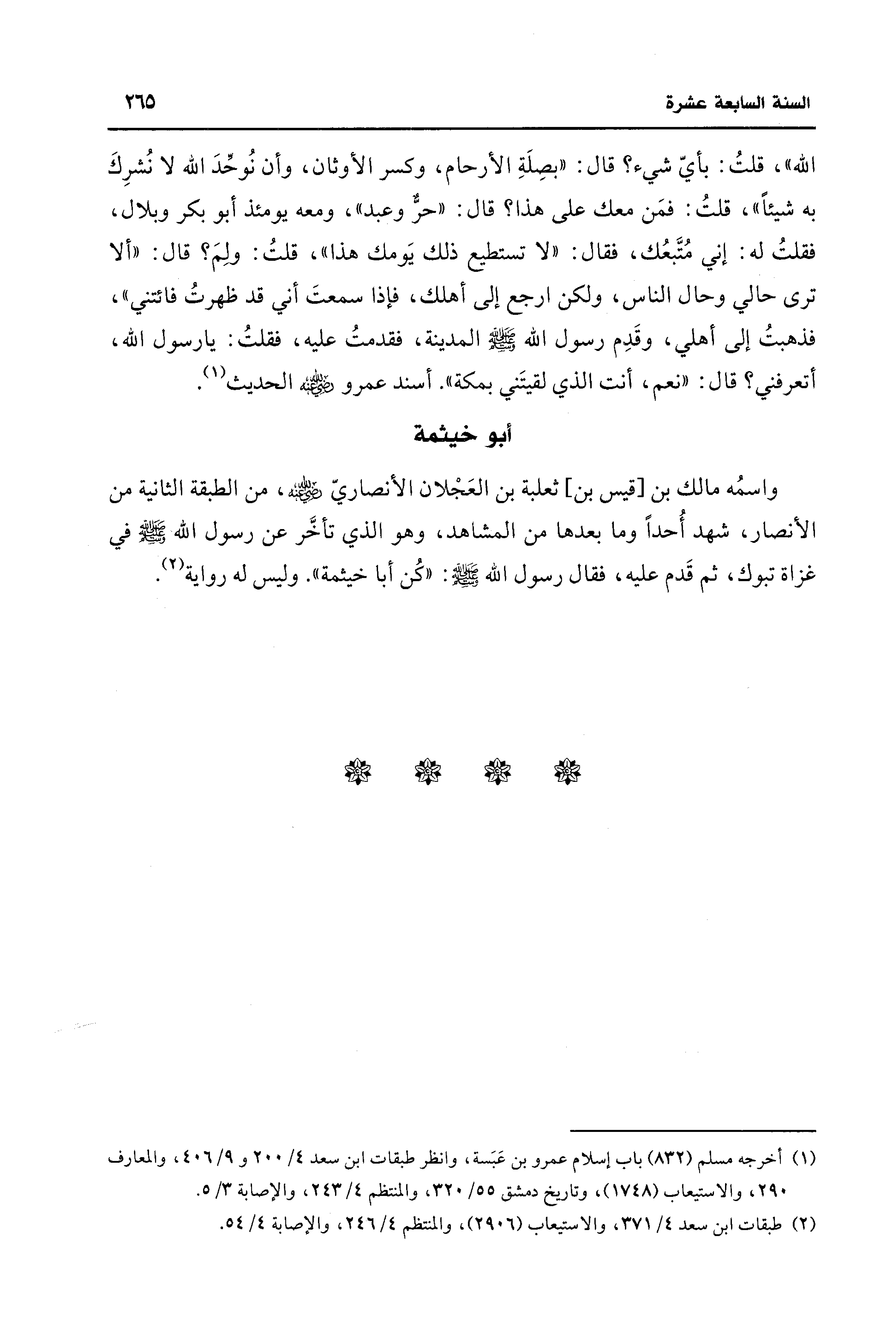 (¬1) أخرجه مسلم (832) باب إسلام عمرو بن عَبَسة، وانظر طبقات ابن سعد 4/ 200 و 9/ 406، والمعارف 290، والاستيعاب (1748)، وتاريخ دمشق 55/ 320، والمنتظم 4/ 243، والإصابة 3/ 5.