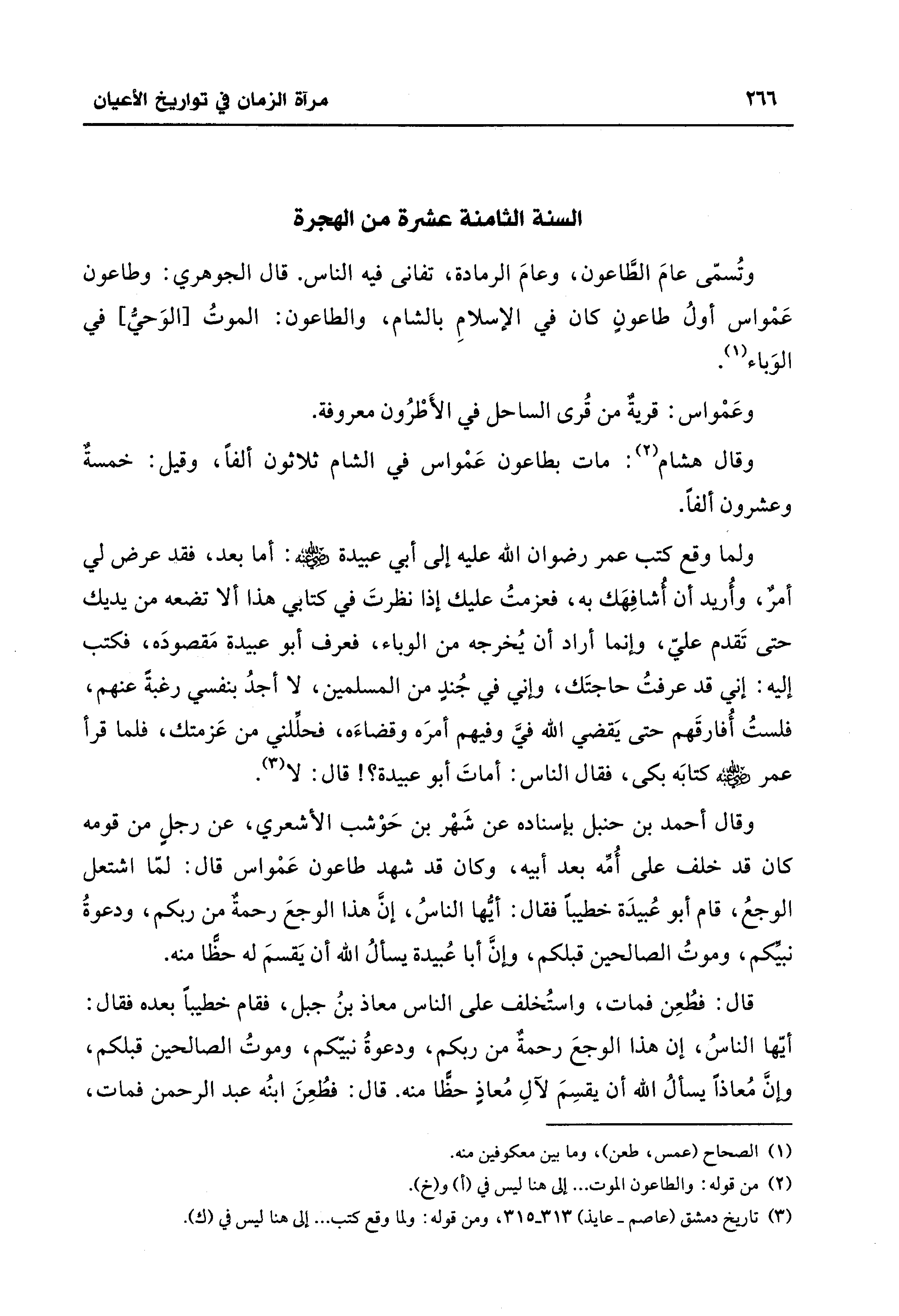 وقال هشام (¬2): مات بطاعون عَمْواس في الشام ثلاثون ألفًا، وقيل: خمسةٌ وعشرون ألفًا.