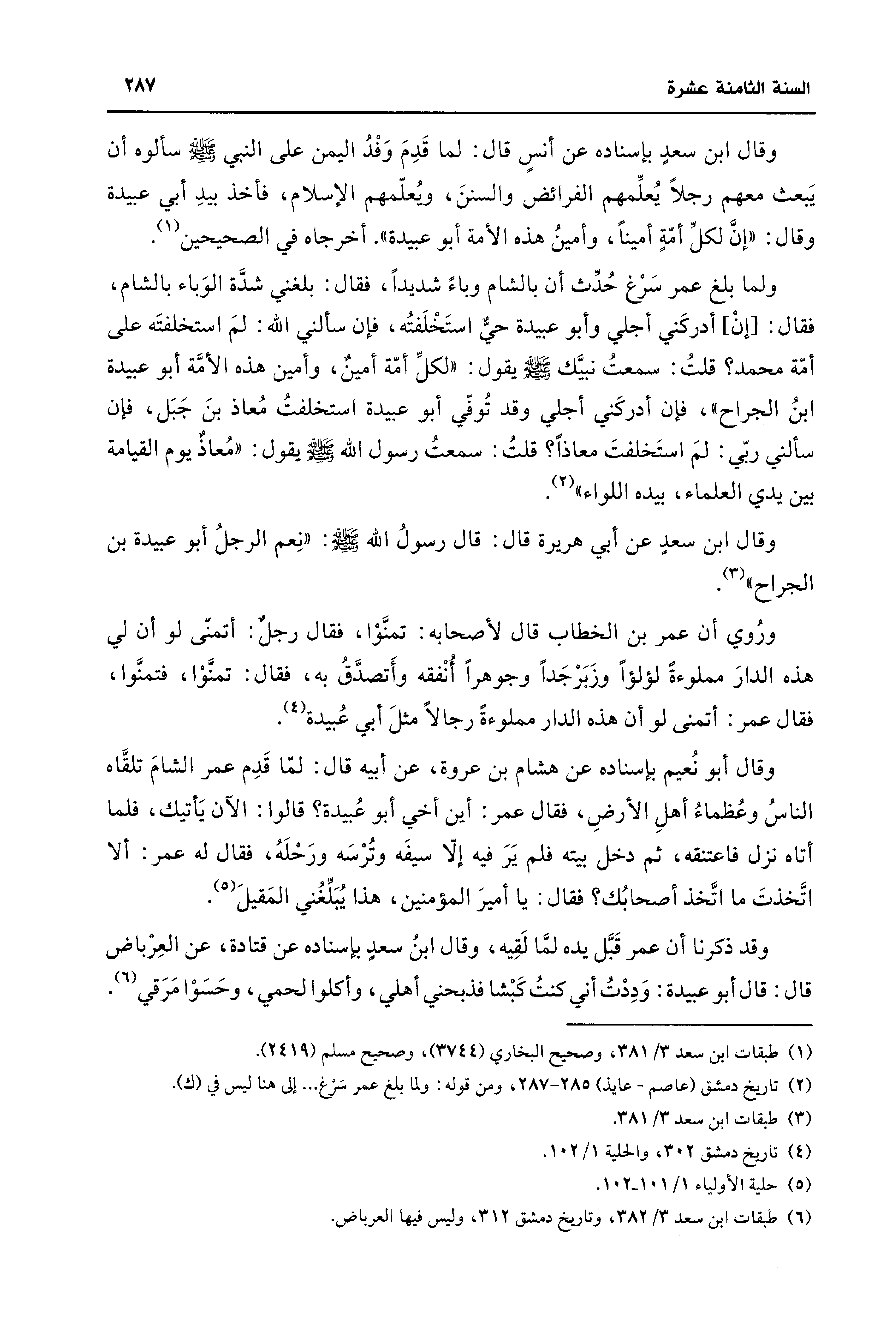 (¬1) طبقات ابن سعد 3/ 381، وصحيح البخاري (3744)، وصحيح مسلم (2419).
