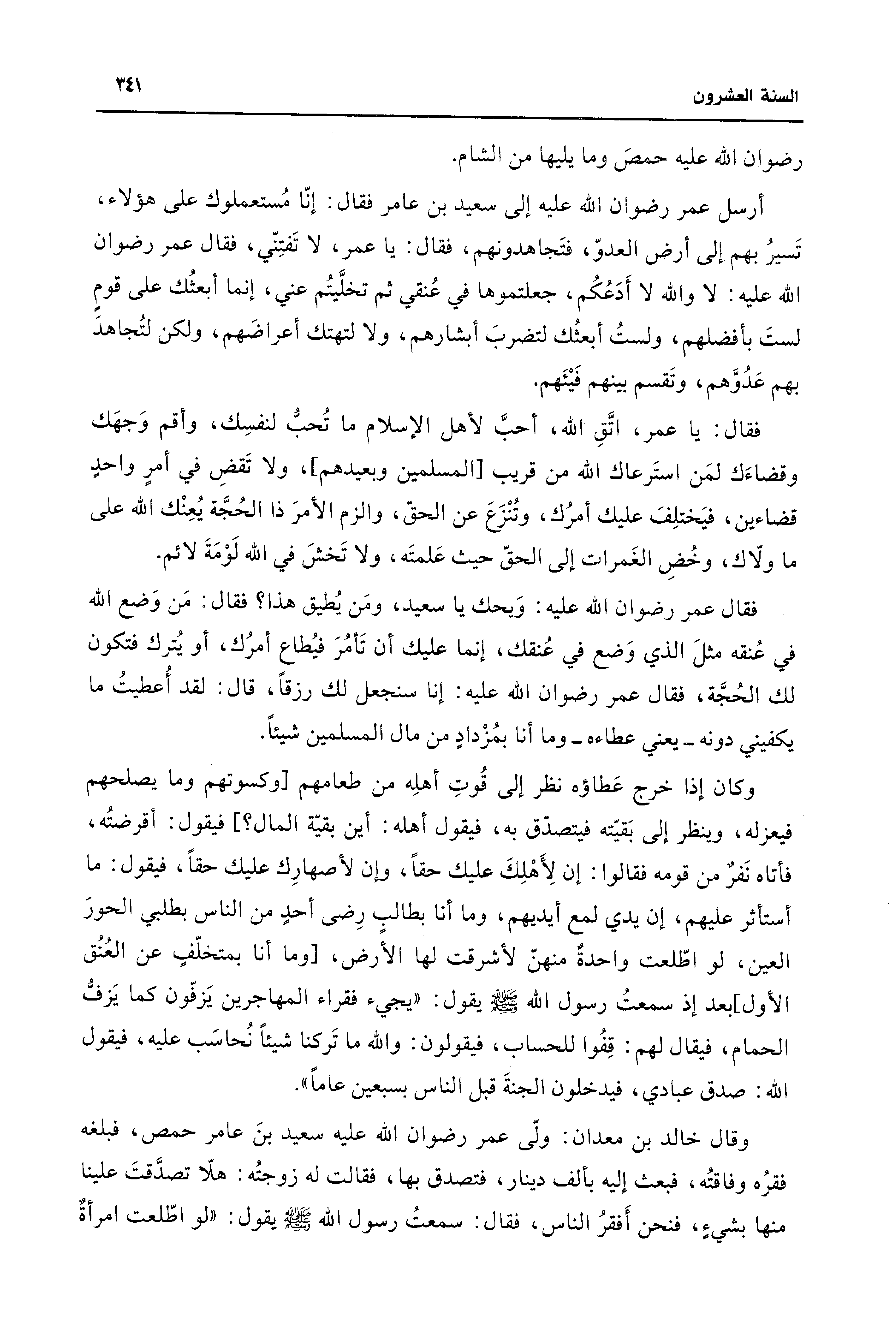 فقال عمر رضوان اللَّه عليه: وَيحك يا سعيد، ومَن يُطيق هذا؟ فقال: مَن وَضع اللَّه في عُنقه مثلَ الذي وَضع في عُنقك، إنما عليك أن تَأمُرَ فيُطاع أمرُك، أو يُترك فتكون لك الحُجَّة، فقال عمر رضوان اللَّه عليه: إنا سنجعل لك رزقًا، قال: لقد أُعطيتُ ما يكفيني دونه -يعني عطاءه- وما أنا بمُزْدادٍ من مال المسلمين شيئًا.