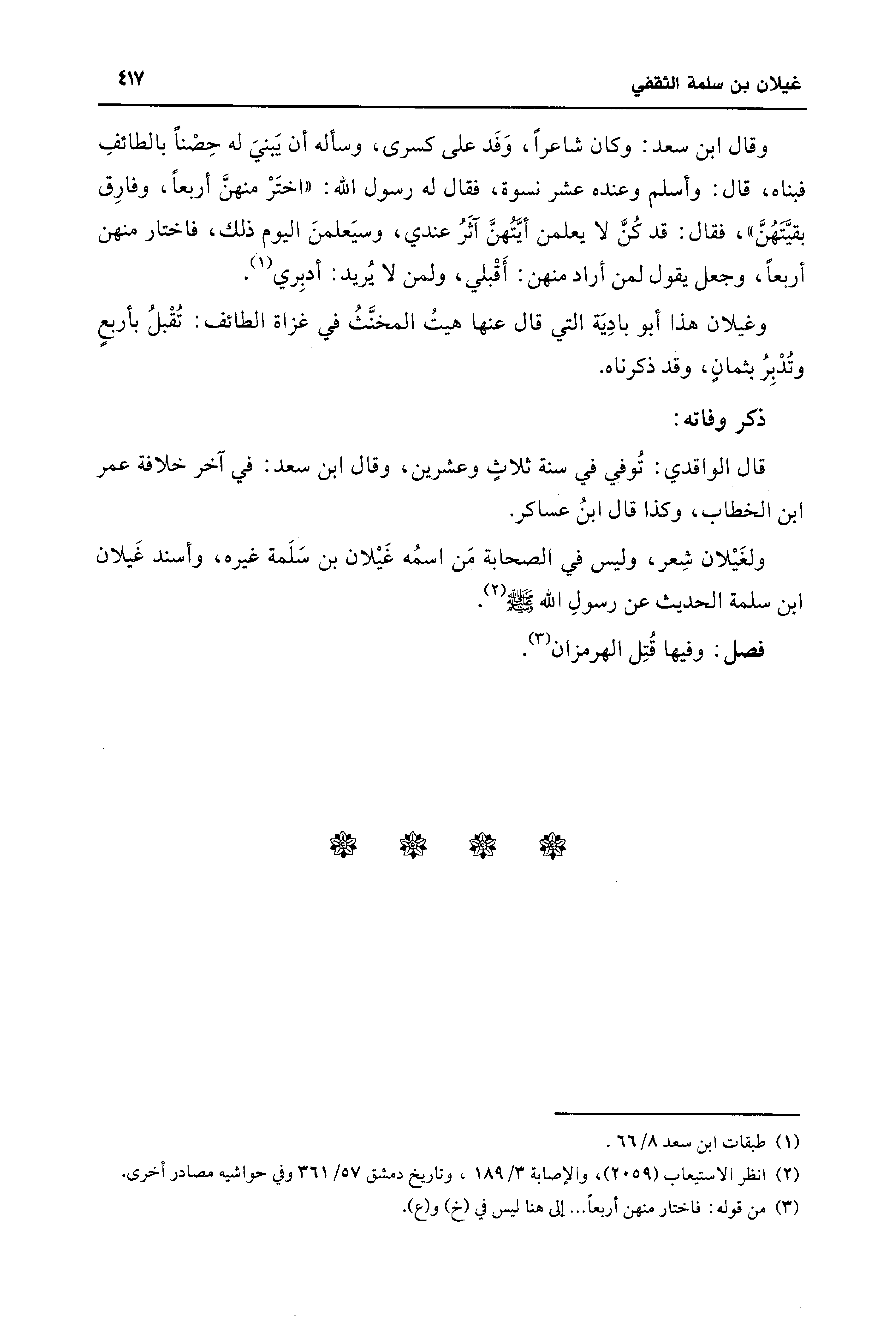 ولغَيْلان شِعر، وليس في الصحابة مَن اسمُه غَيْلان بن سَلَمة غيره، وأسند غَيلان ابن سلمة الحديث عن رسولِ اللَّه -صلى اللَّه عليه وسلم- (¬2).