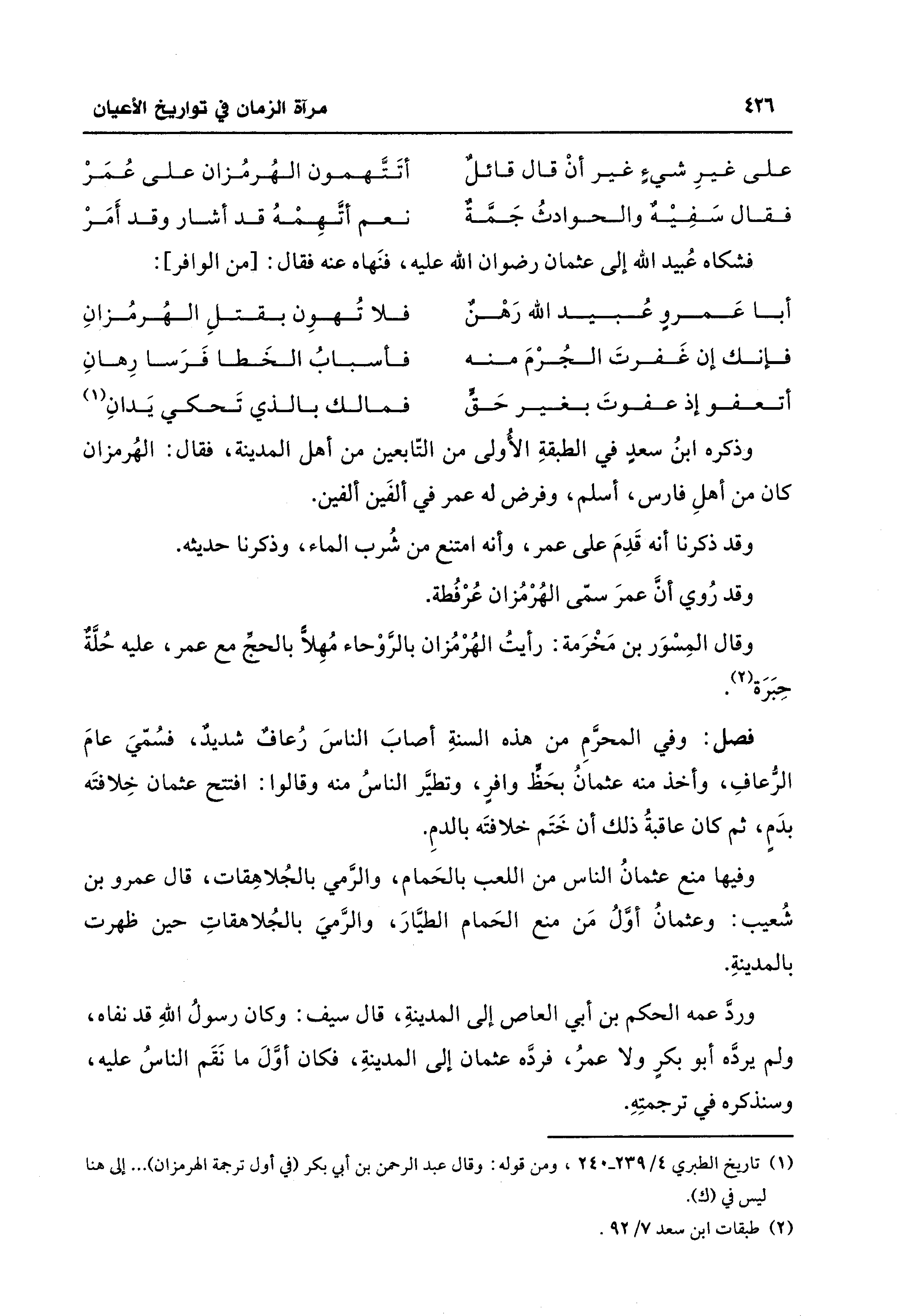 (¬1) تاريخ الطبري 4/ 239 - 240، ومن قوله: وقال عبد الرحمن بن أبي بكر (في أول ترجمة الهرمزان). . . إلى هنا ليس في (ك).