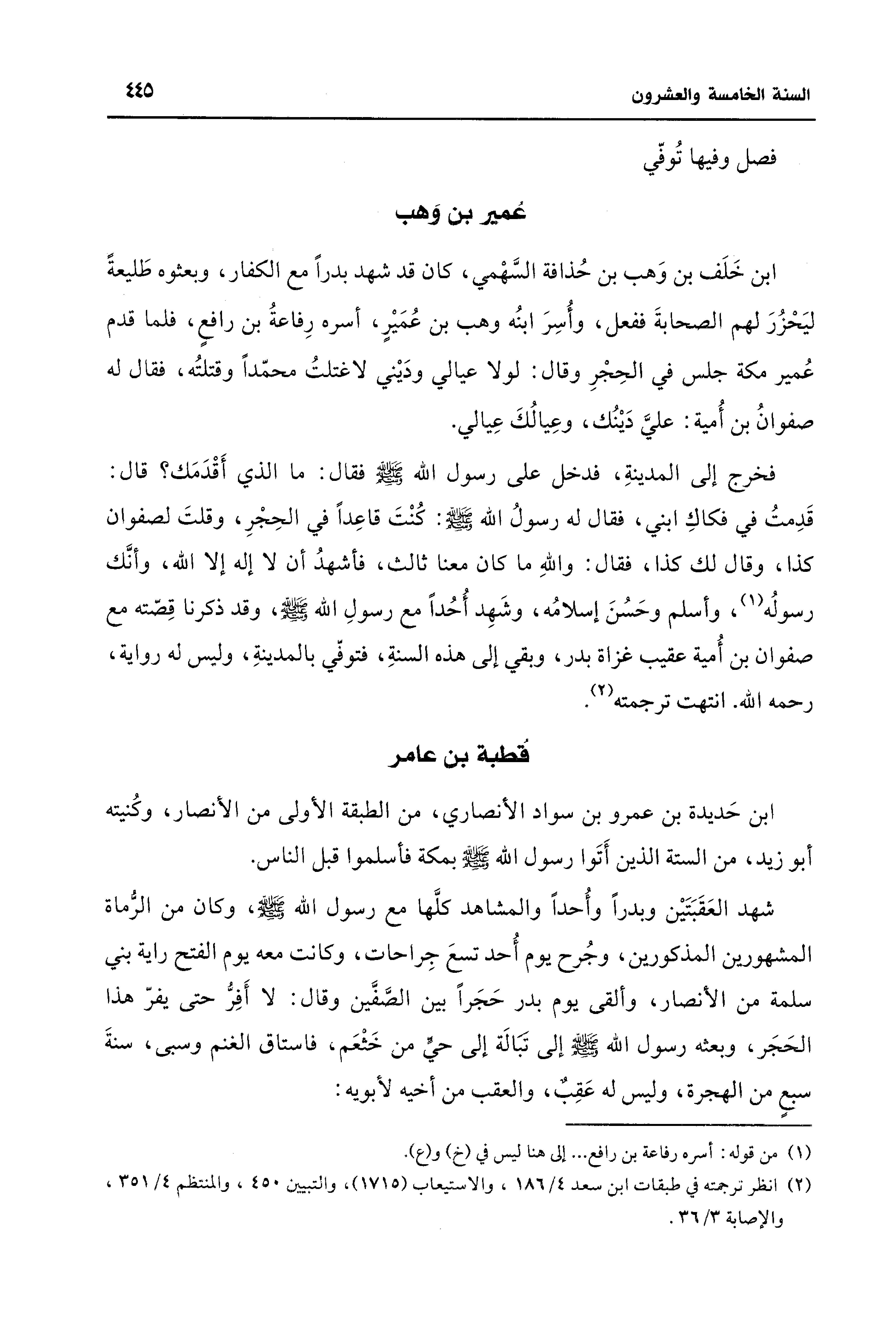 (¬2) انظر ترجمته في طبقات ابن سعد 4/ 186، والاستيعاب (1715)، والتبيين 450، والمنتظم 4/ 351، والإصابة 3/ 36.