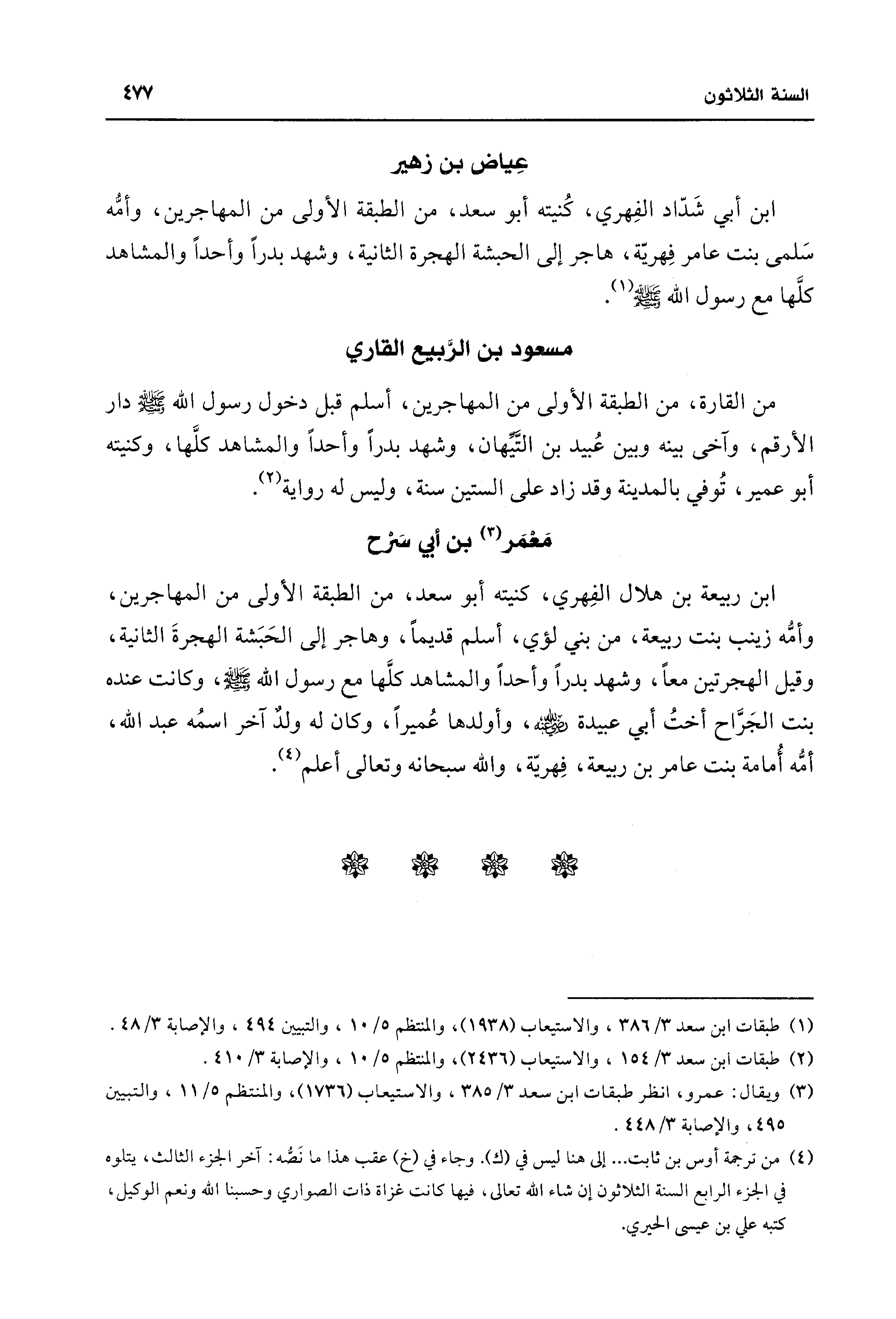 (¬2) طبقات ابن سعد 3/ 154، والاستيعاب (2436)، والمنتظم 5/ 10، والإصابة 3/ 410.