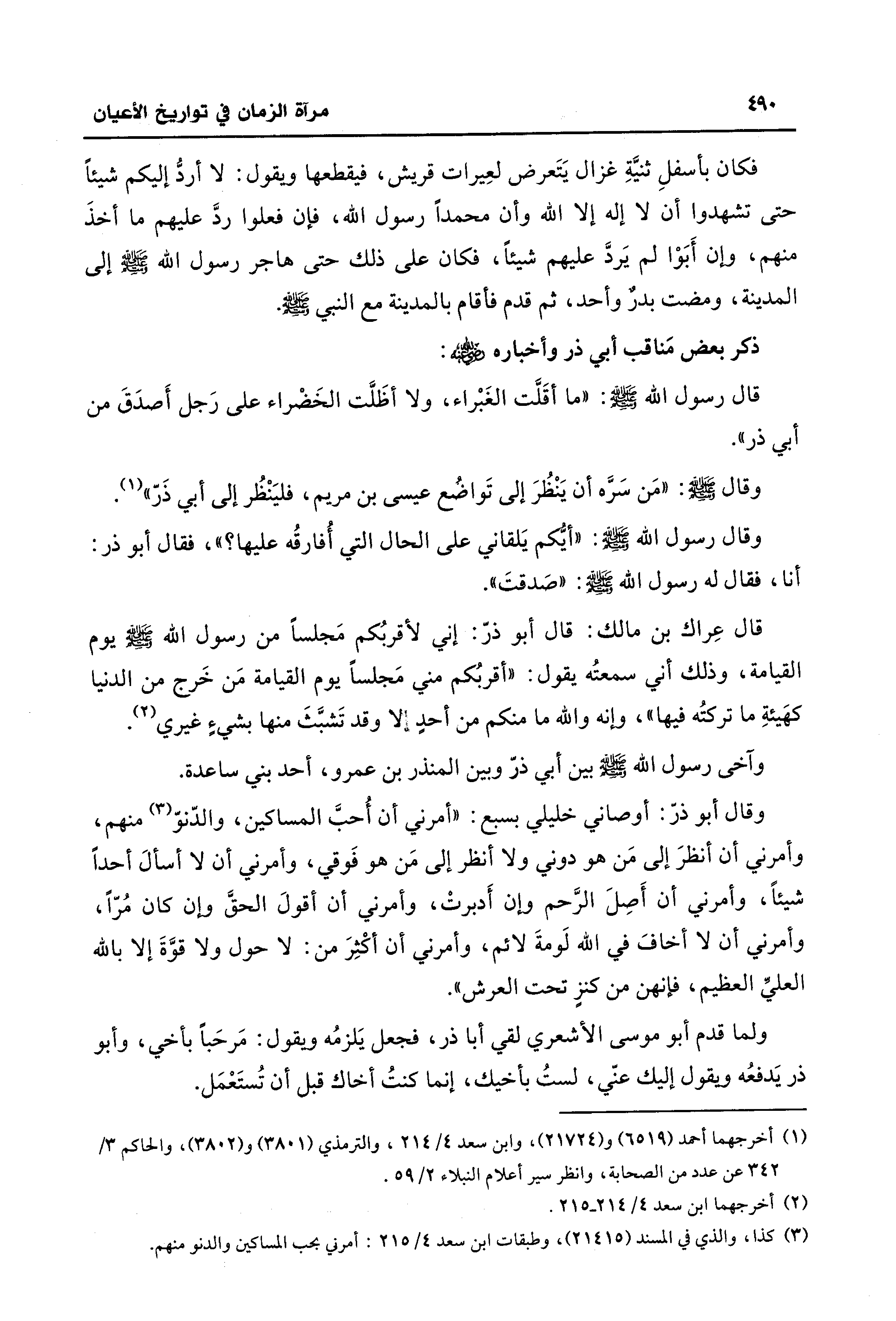 (¬1) أخرجهما أحمد (6519) و (21724)، وابن سعد 4/ 214، والترمذي (3801) و (3802)، والحاكم 3/ 342 عن عدد من الصّحابة، وانظر سير أعلام النبلاء 2/ 59.