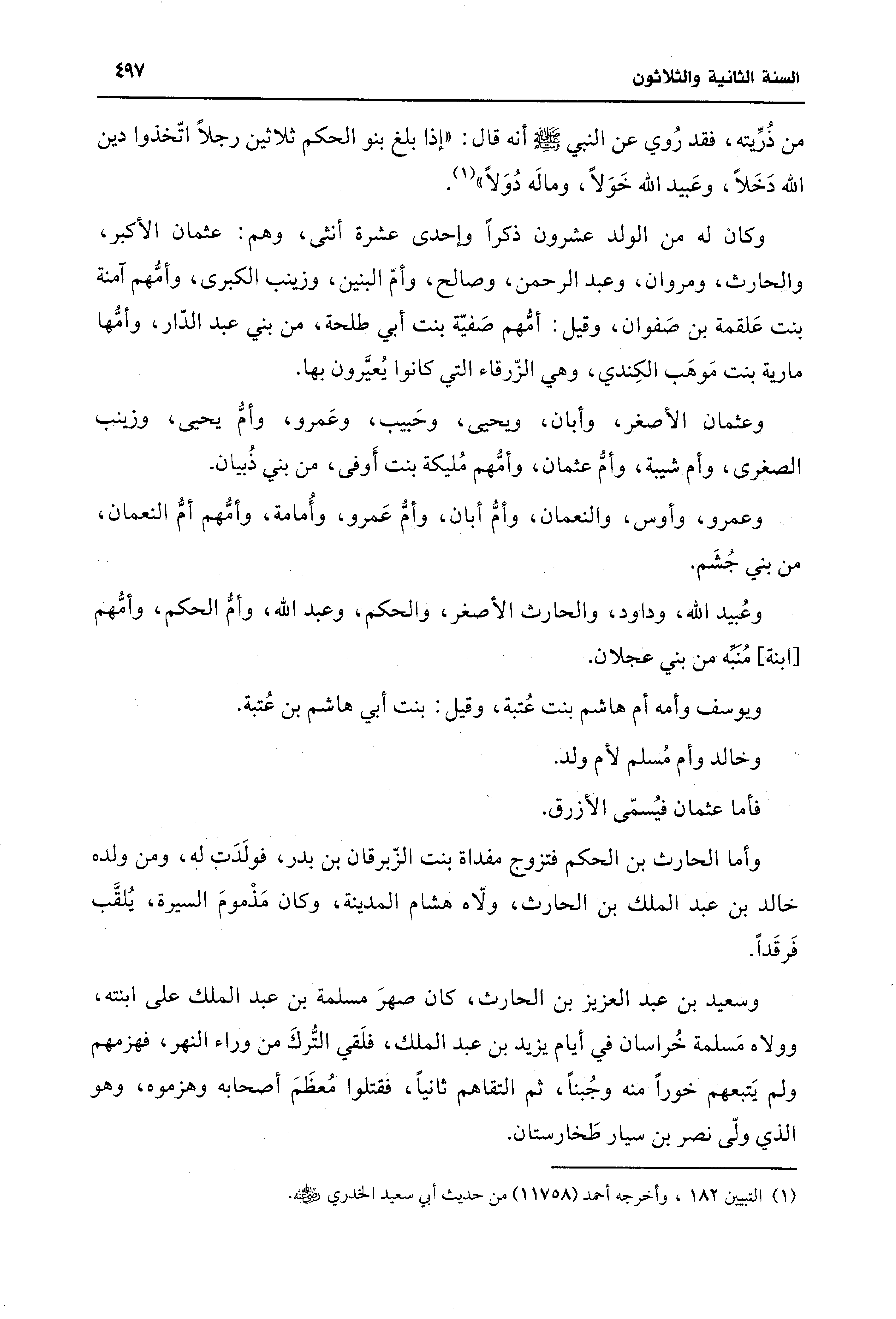 من ذُرِّيته، فقد رُوي عن النَّبيِّ - صلى الله عليه وسلم - أنَّه قال: "إذا بلغ بنو الحكم ثلاثين رجلًا اتّخذوا دين الله دَخَلًا، وعَبيد الله خَوَلًا، وماله دُوَلًا" (¬1).