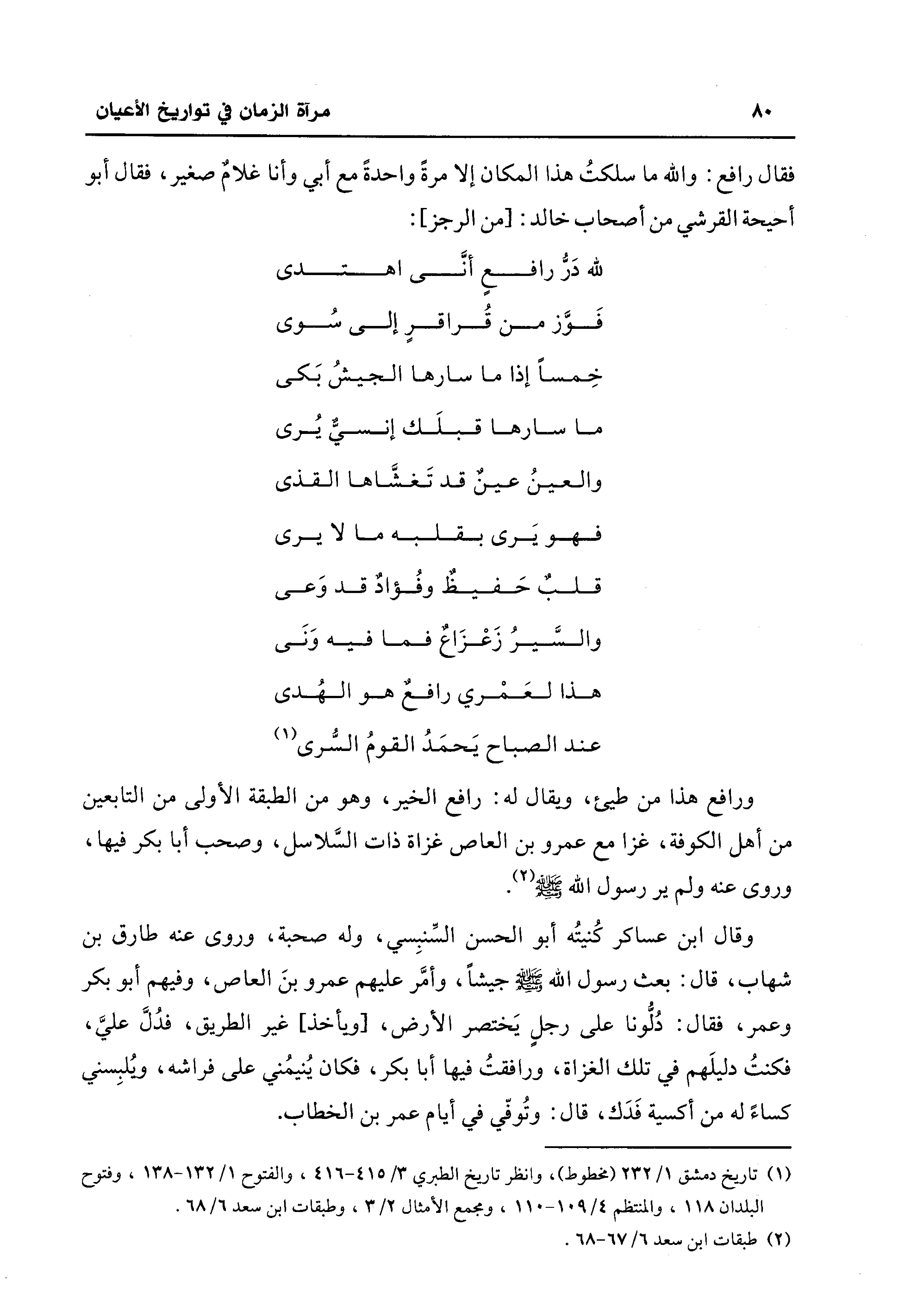 ورافع هذا من طيئ، ويقال له: رافع الخير، وهو من الطبقة الأولى من التابعين من أهل الكوفة، غزا مع عمرو بن العاص غزاة ذات السَّلاسل، وصحب أبا بكر فيها، وروى عنه ولم ير رسول الله - صلى الله عليه وسلم - (¬2).