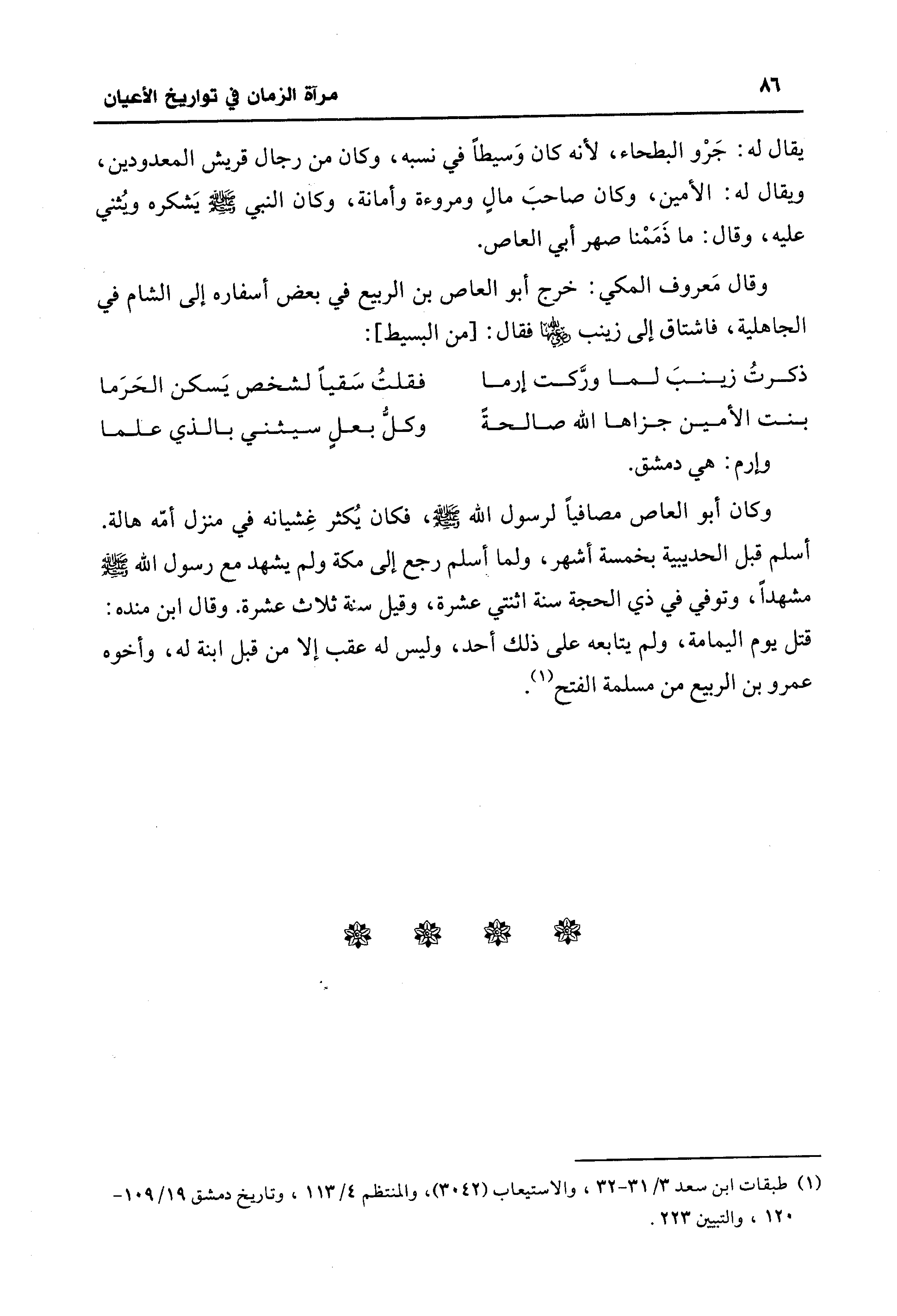 (¬1) طبقات ابن سعد 3/ 31 - 32، والاستيعاب (3042)، والمنتظم 4/ 113، وتاريخ دمشق 19/ 109 - 120، والتبيين 223.