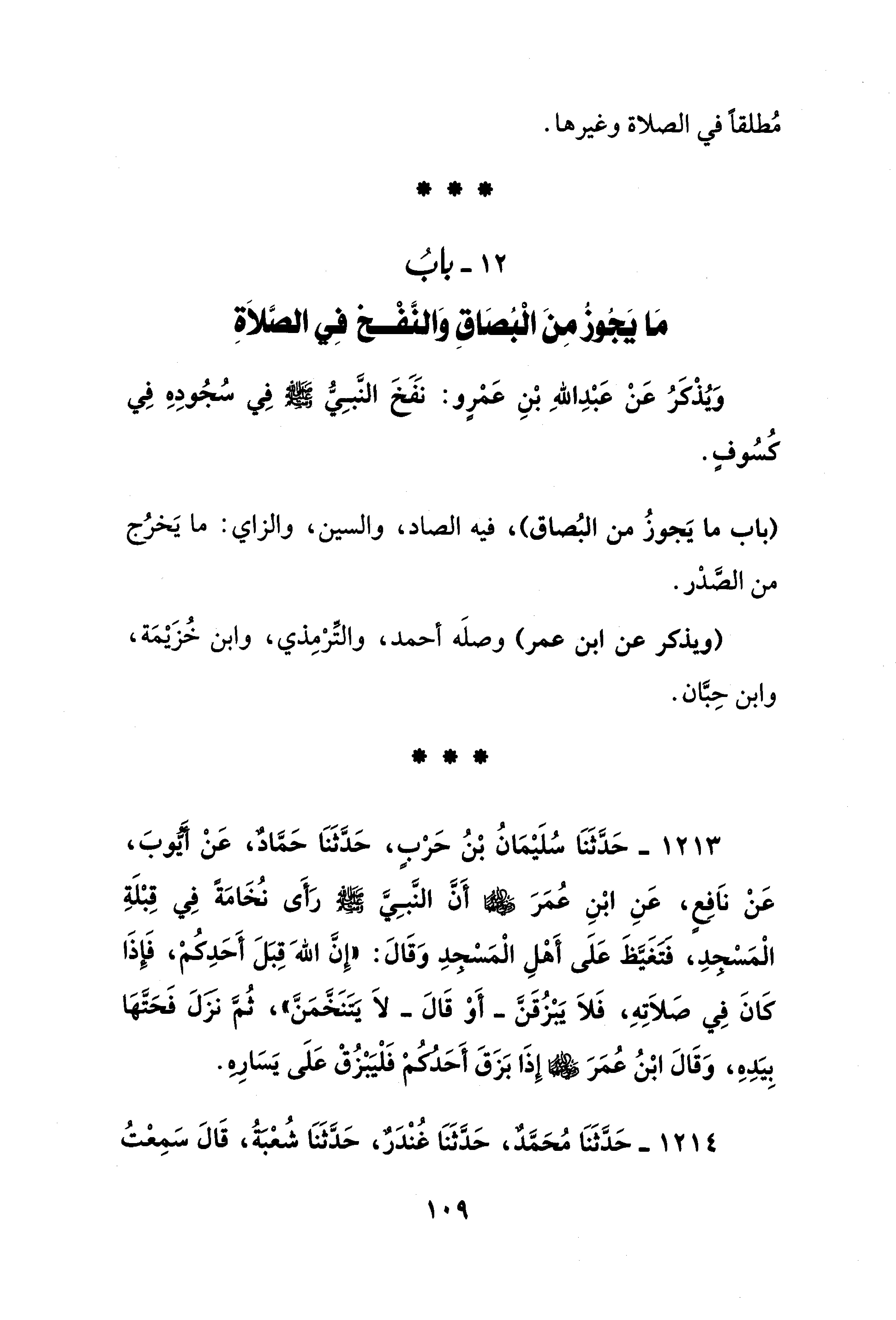 12 - بابُ مَا يَجُوزُ مِنَ الْبُصَاقِ وَالنَّفْخ في الصَّلَاةِ