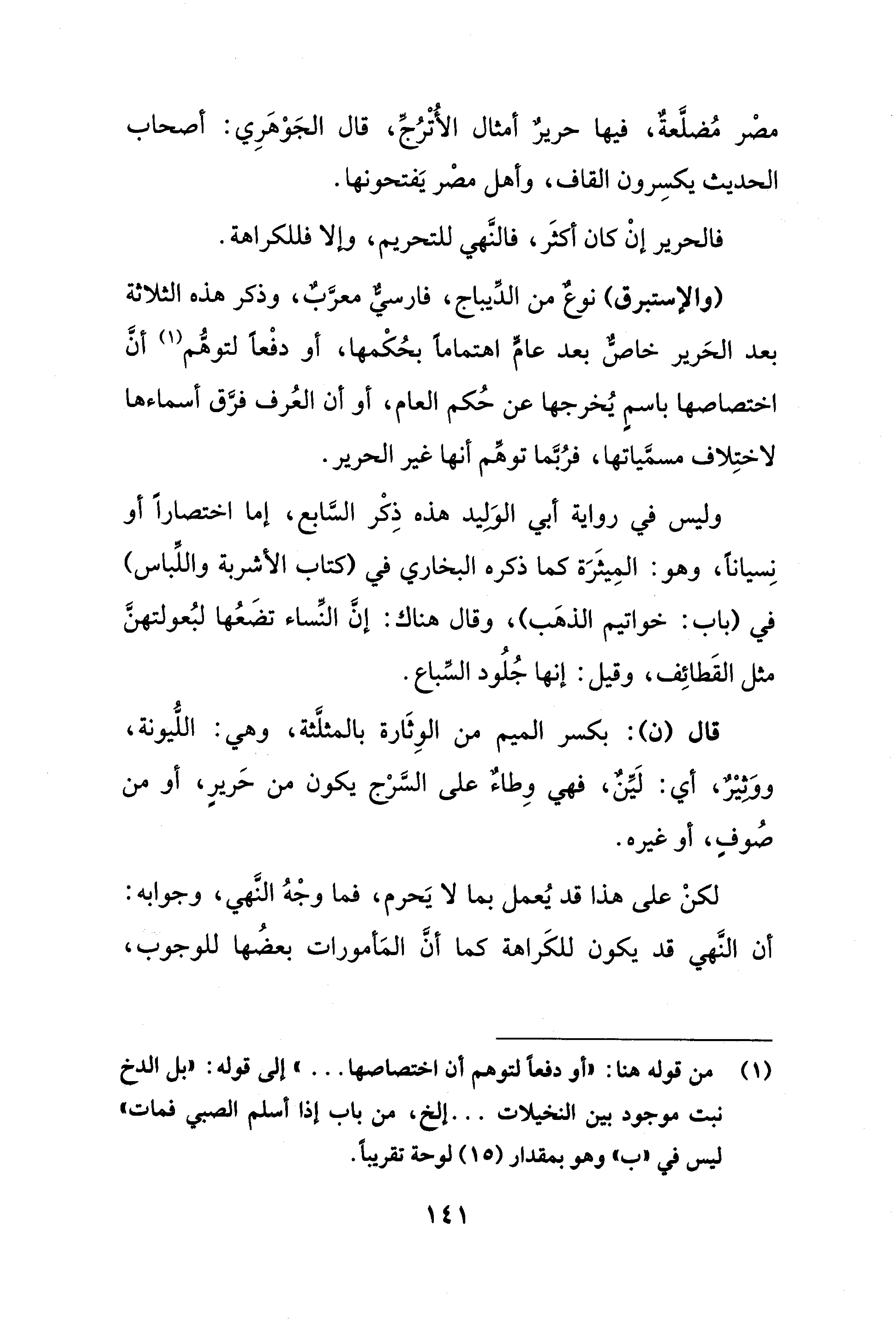 (والإستبرق) نوعٌ من الدِّيباج، فارسيٌّ معرَّبٌ، وذكر هذه الثلاثة بعد الحَرير خاصٌّ بعد عامٍّ اهتمامًا بحُكْمها، أو دفْعًا لتوهُّم (¬1) أنَّ اختصاصها باسمٍ يُخرجها عن حُكم العام، أو أن العُرف فرَّق أسماءها لاختِلاف مسمَّياتها، فرُبَّما توهِّم أنها غير الحرير.