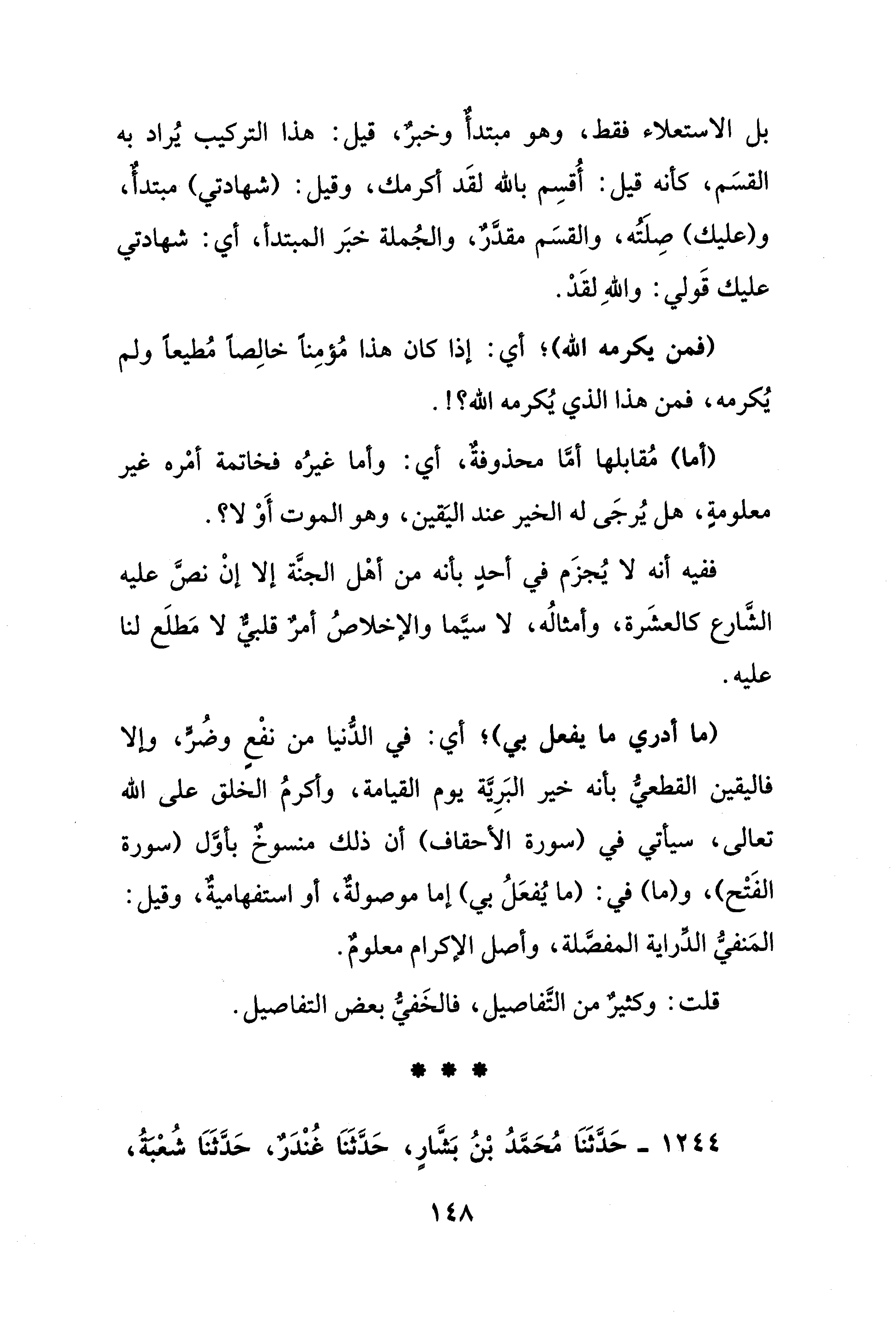 (ما أدري ما يفعل بي)؛ أي: في الدُّنيا من نفْعٍ وضُرٍّ، وإلا فاليقين القطعيُّ بأنه خير البَرِيَّة يوم القيامة، وأكرمُ الخلق على الله تعالى، سيأتي في (سورة الأحقاف) أن ذلك منسوخٌ بأوَّل (سورة الفَتْح)، و (ما) في: (ما يُفعَلُ بي) إما موصولةٌ، أو استفهاميةٌ، وقيل: المَنفيُّ الدِّراية المفصَّلة، وأصل الإكرام معلومٌ.