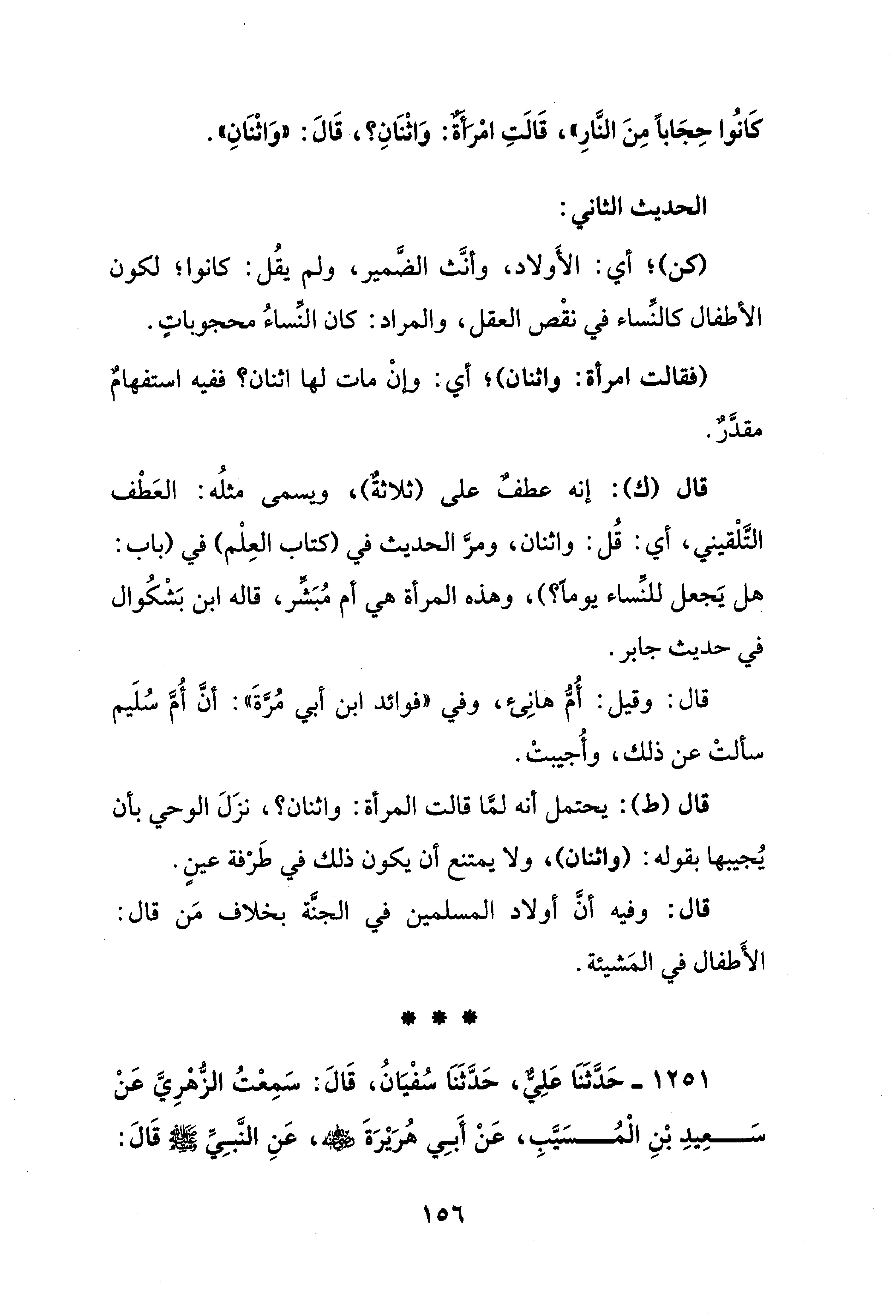 كَانُوا حِجَابًا مِنَ النَّارِ"، قَالَتِ امْرَأَةٌ: وَاثْنَانِ؟، قَالَ: "وَاثْنَانِ".