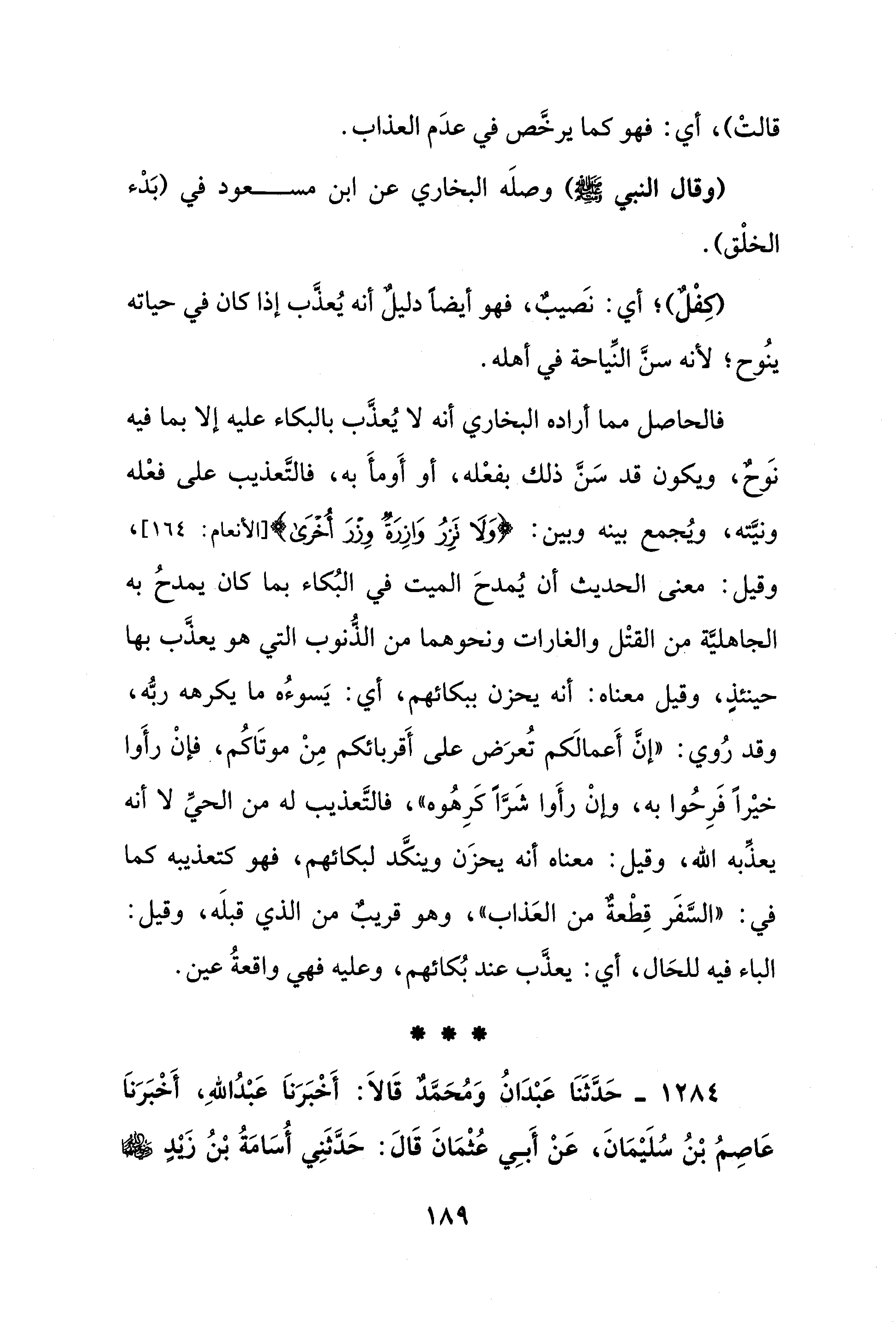 (وقال النبي - صلى الله عليه وسلم -) وصلَه البخاري عن ابن مسعود في (بَدْء الخلْق).