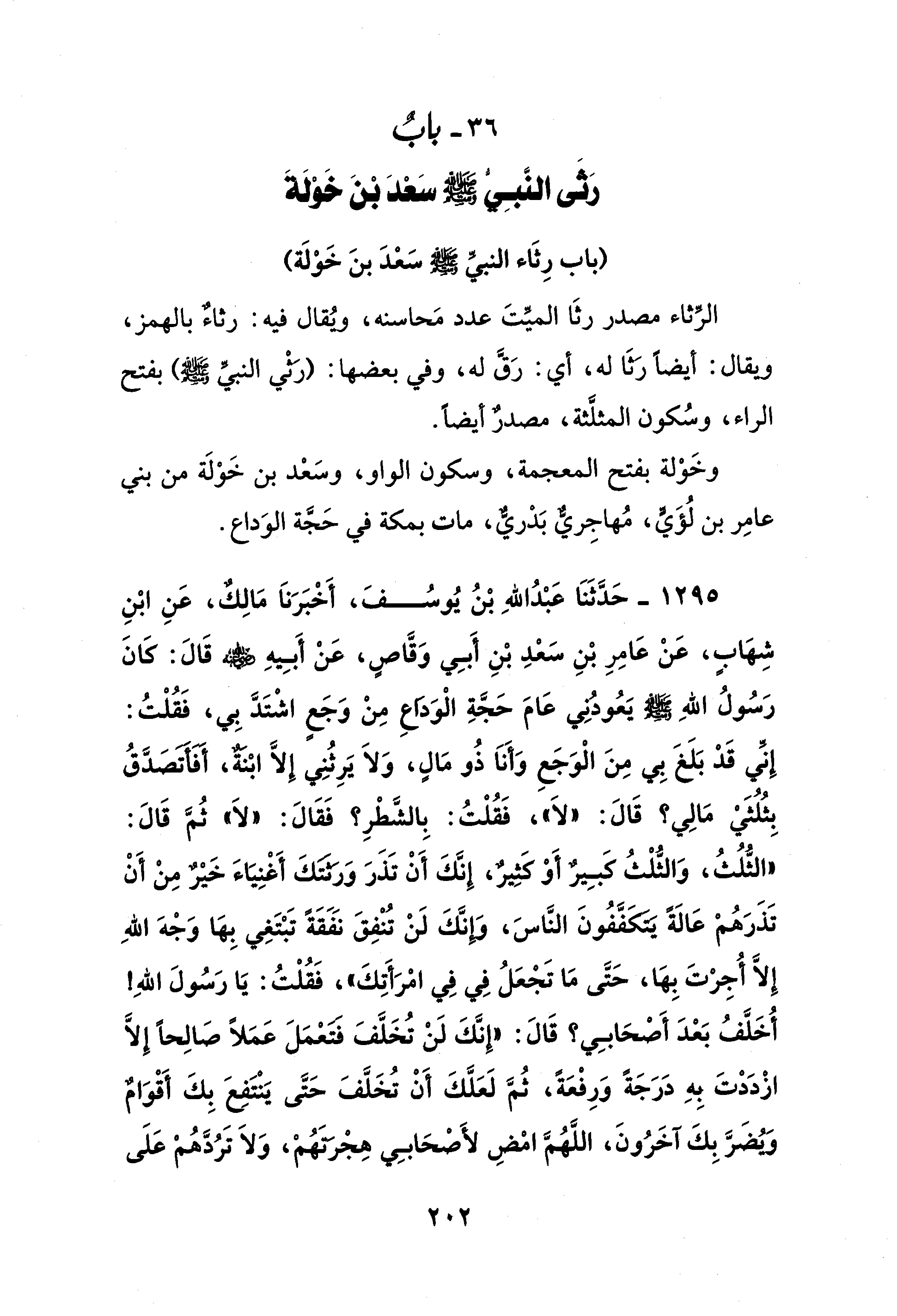 36 - بابٌ رَثَى النَّبِيُّ - صلى الله عليه وسلم - سَعْدَ بْنَ خَوْلَةَ