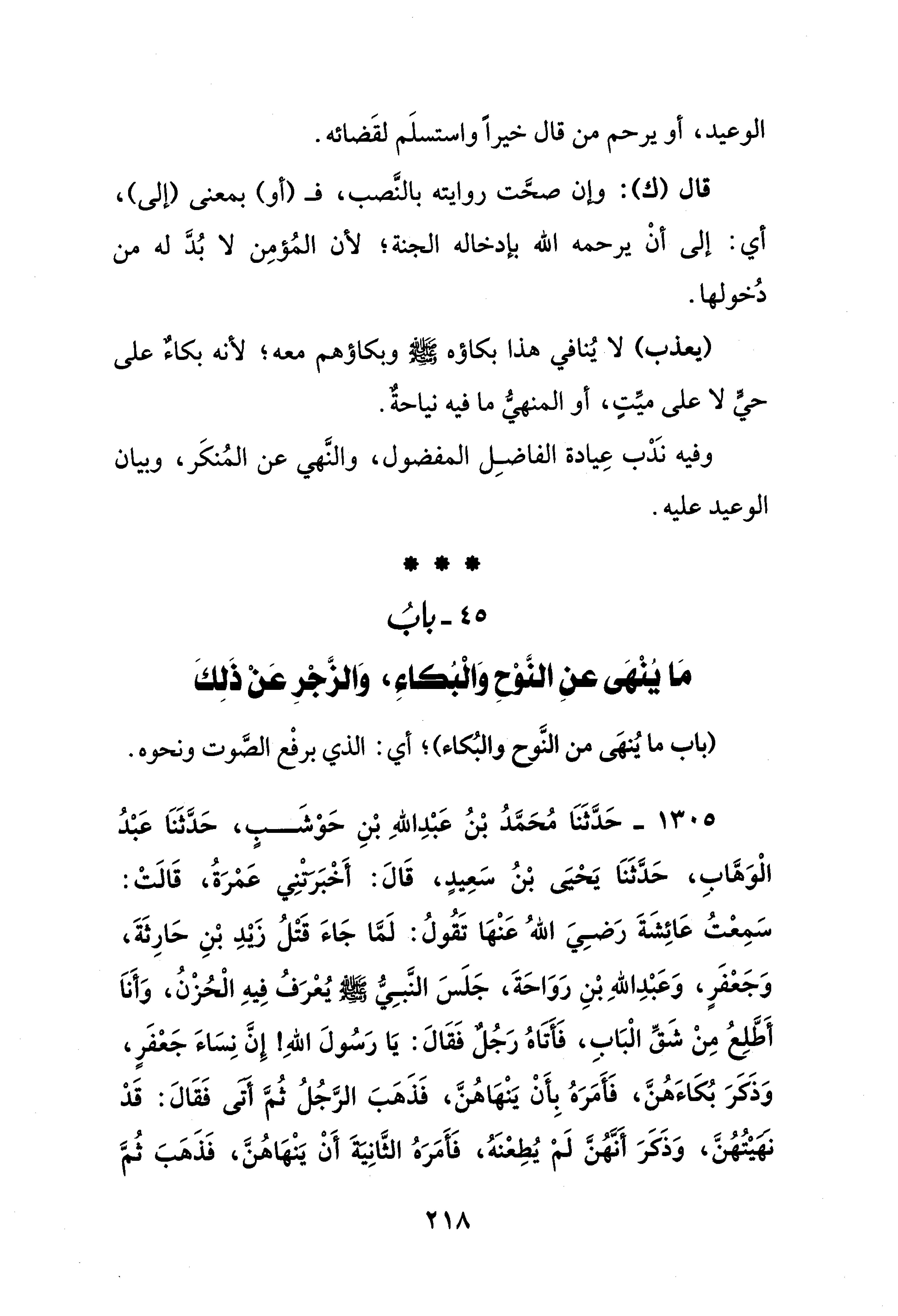 45 - بابُ مَا يُنْهَى عنِ النَّوْحِ وَالْبُكاء، وَالزَّجْرِ عَنْ ذَلِكَ