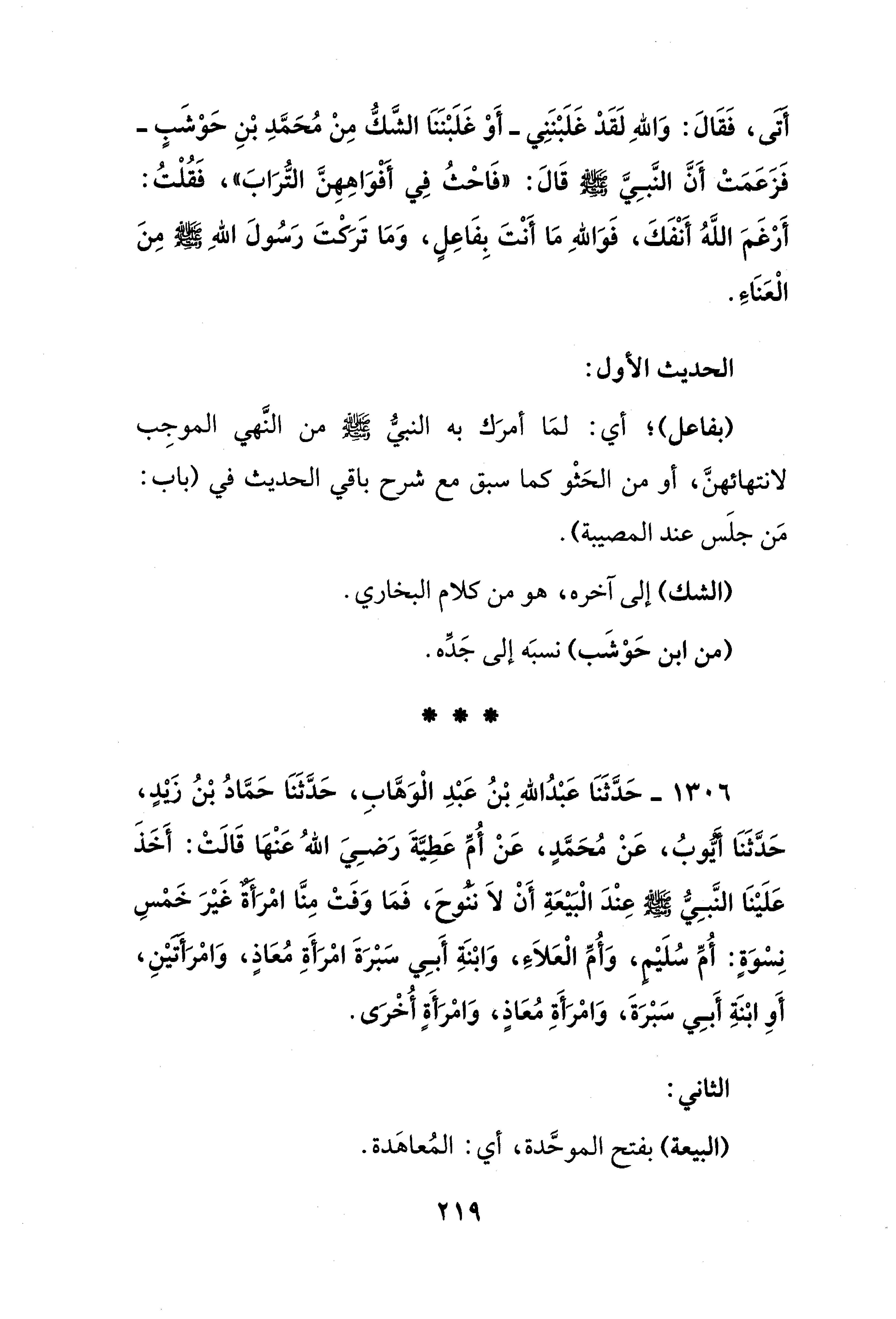 أَتَى، فَقَالَ: وَاللهِ لَقَدْ غَلَبْنَنِي -أَوْ غَلَبْنَنَا الشَّكُّ مِنْ مُحَمَّدِ بْنِ حَوْشَبٍ- فَزَعَمَتْ أَنَّ النَّبِيَّ - صلى الله عليه وسلم - قَالَ: "فَاحْثُ فِي أَفْوَاهِهِنَّ التُّرَابَ"، فَقُلْتُ: أَرْغَمَ اللهُ أَنْفَكَ، فَوَاللهِ مَا أَنْتَ بِفَاعِلٍ، وَمَا تَرَكْتَ رَسُولَ اللهِ - صلى الله عليه وسلم - مِنَ الْعَنَاءِ.