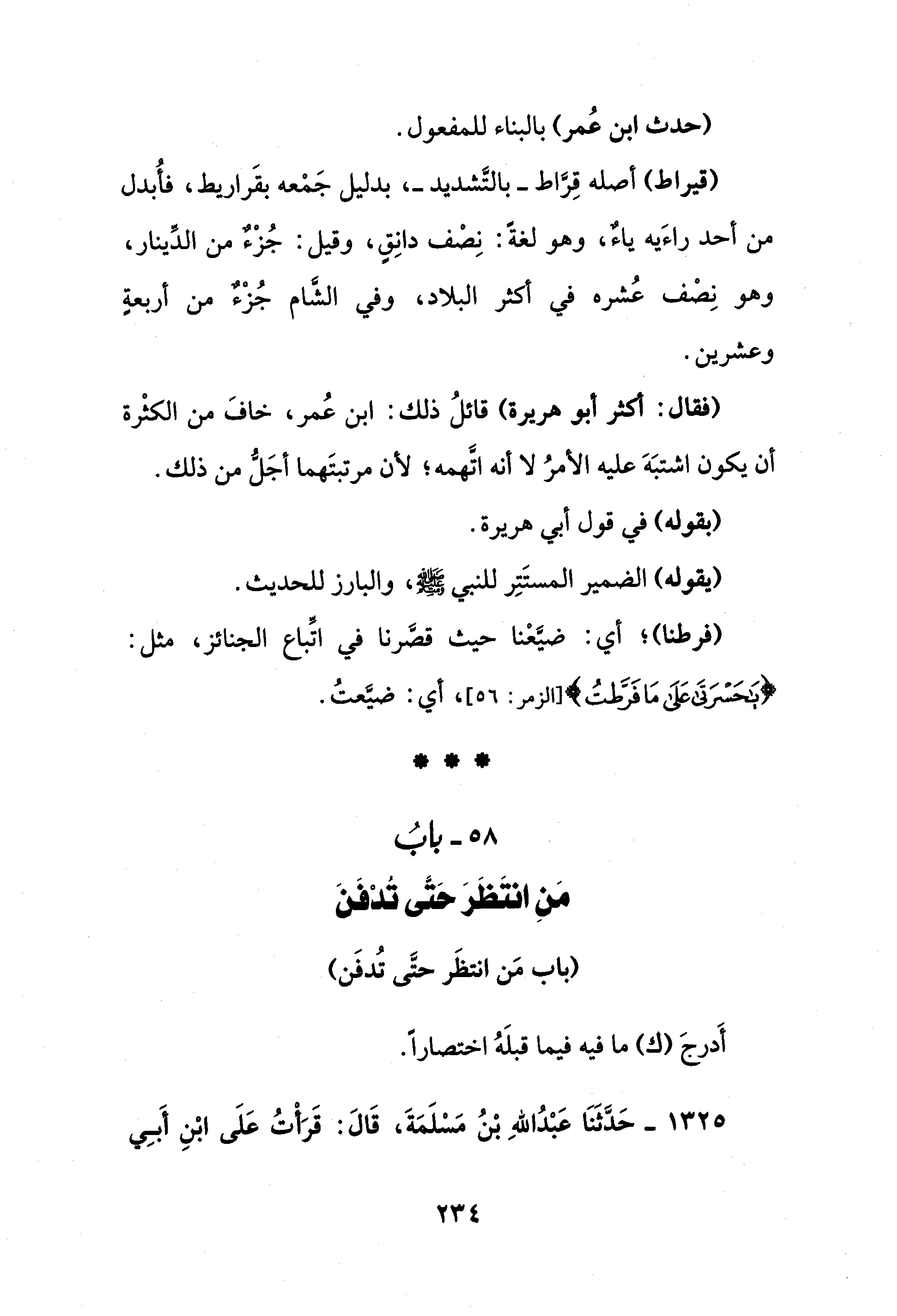 58 - بابُ مَنِ انتَظَرَ حَتَّى تُدْفَنَ