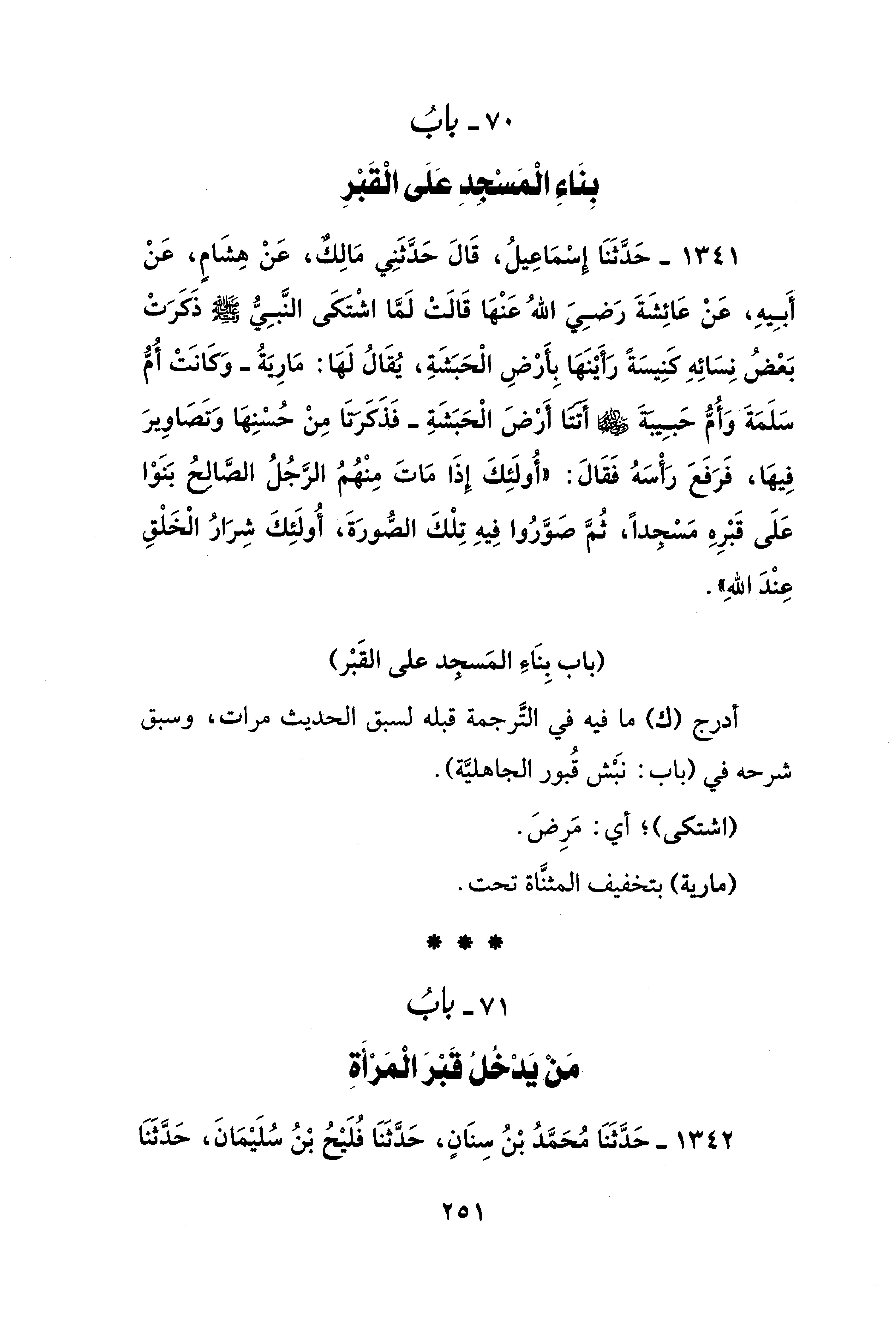 70 - بابُ بِنَاءِ الْمَسْجِدِ عَلَى الْقَبْرِ