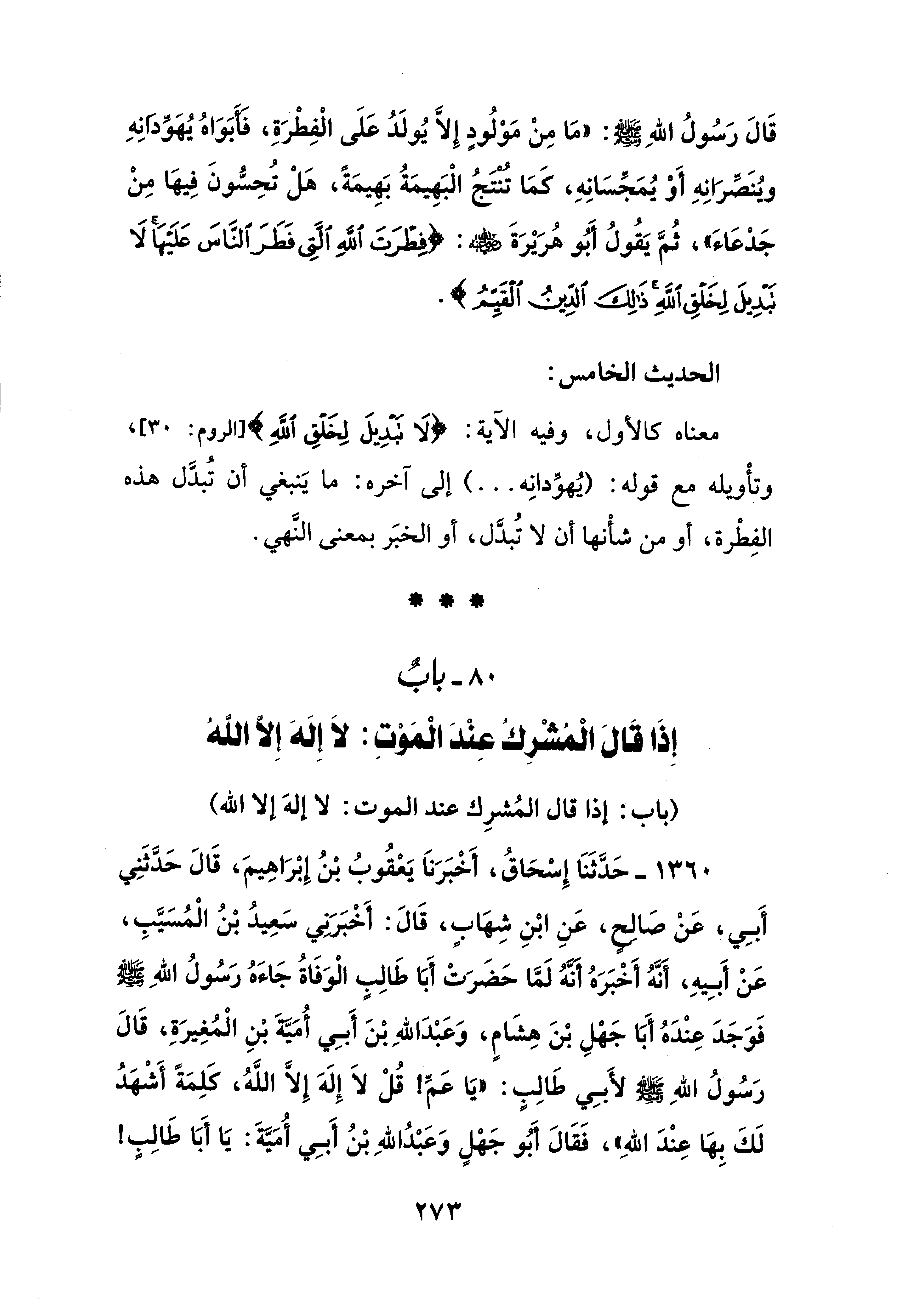 80 - بابٌ إِذَا قَالَ الْمُشْرِكُ عِنْدَ الْمَوْتِ: لاَ إِلَهَ إِلَّا اللهُ