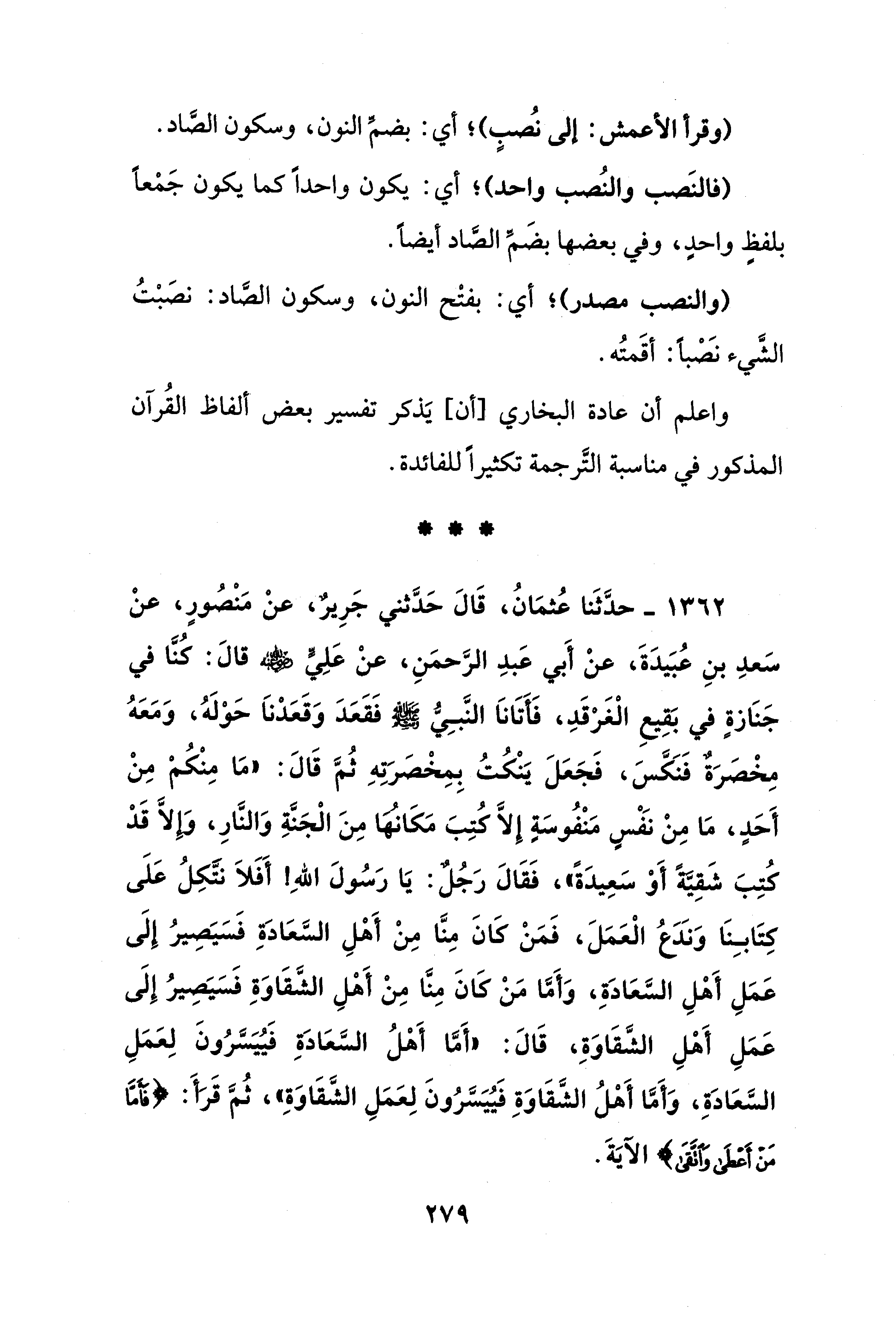 (وقرأ الأعمش: إلى نُصبٍ)؛ أي: بضمِّ النون، وسكون الصَّاد.
