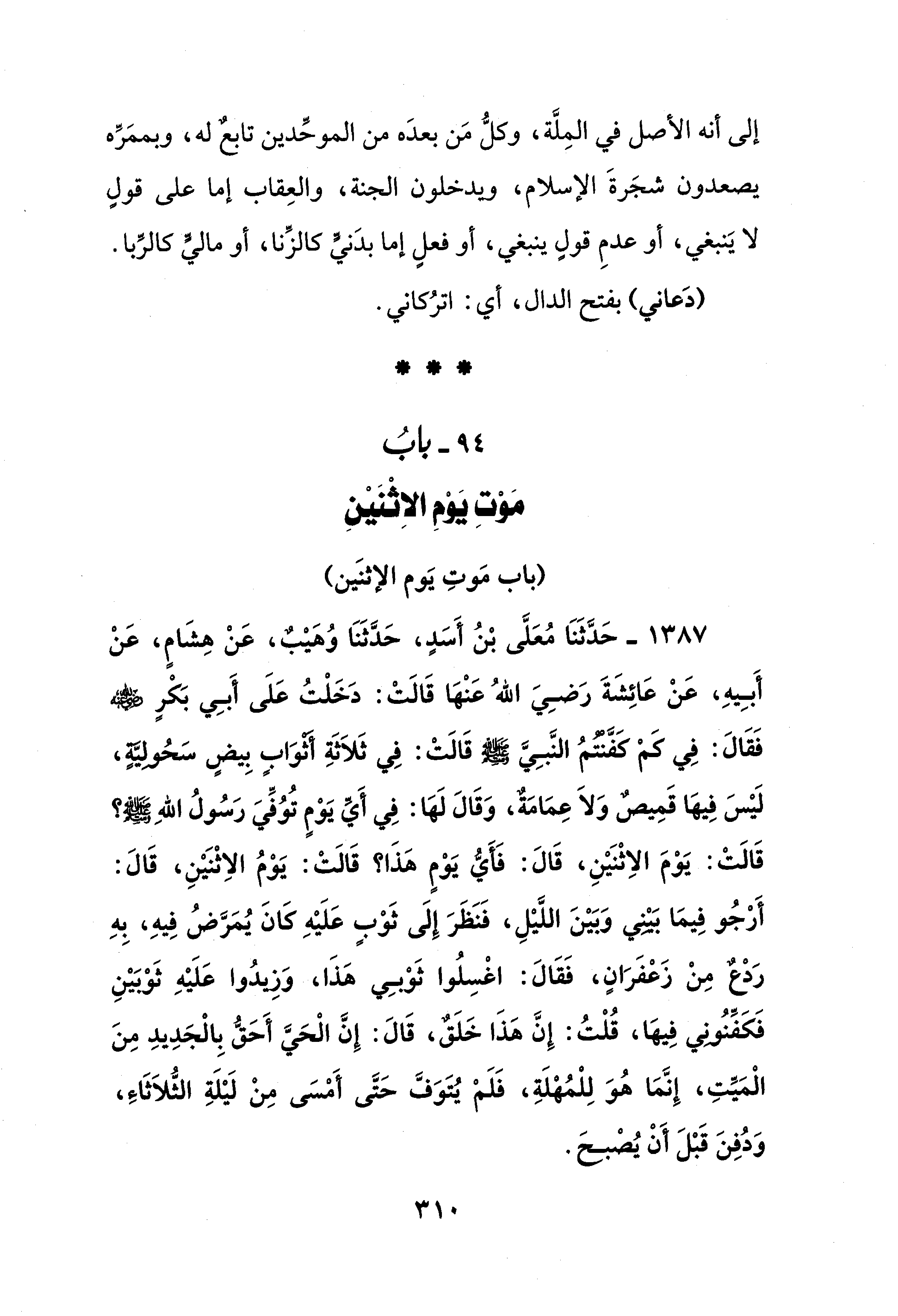94 - بابُ مَوْتِ يَوْمِ الاِثْنَيْنِ