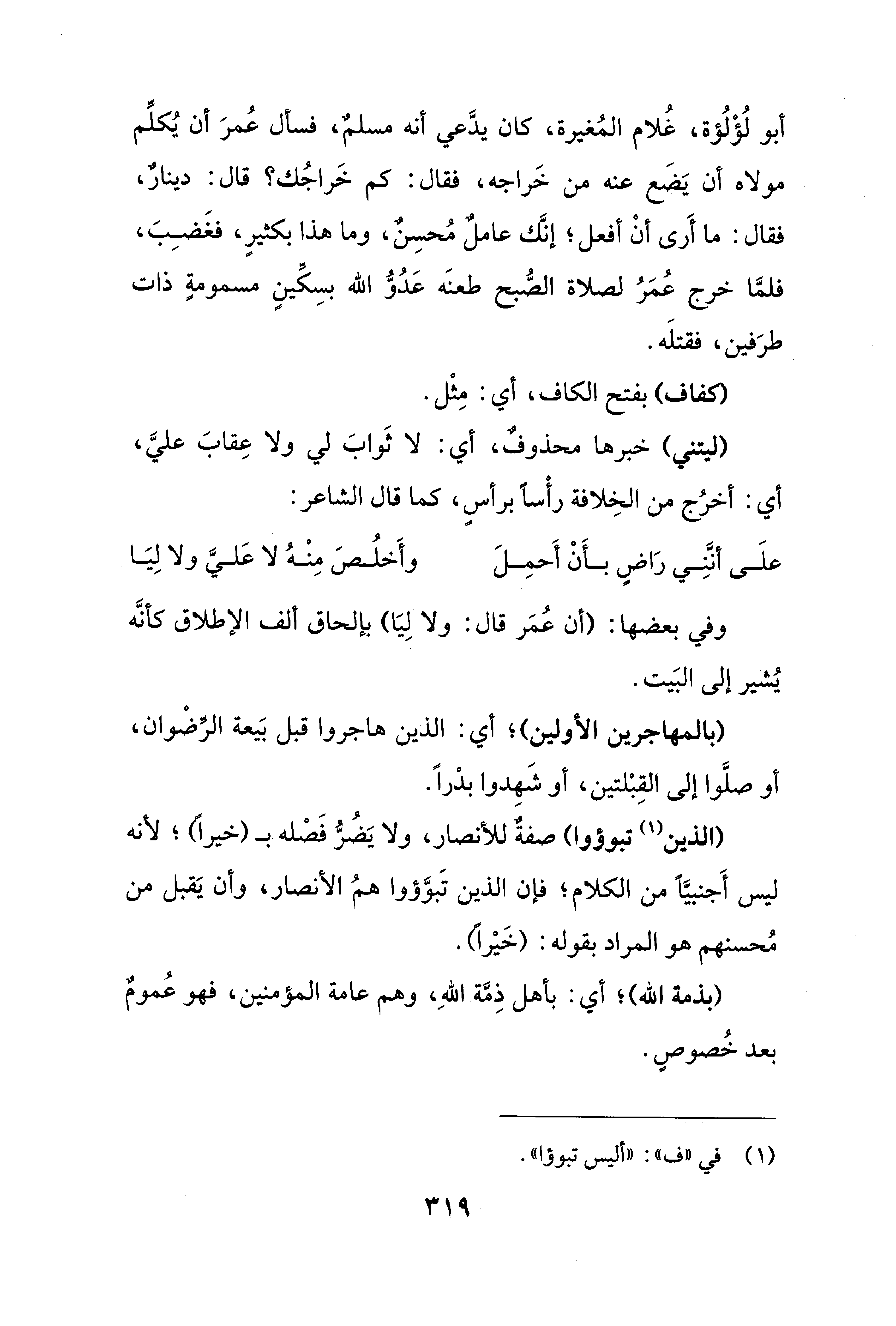 وفي بعضها: (أن عُمَر قال: ولا لِيَا) بإلحاق ألف الإطلاق كأنَّه يُشير إلى البَيت.